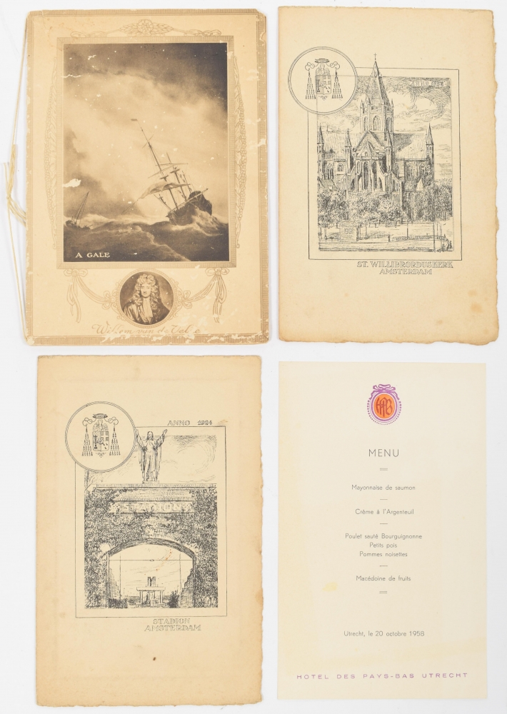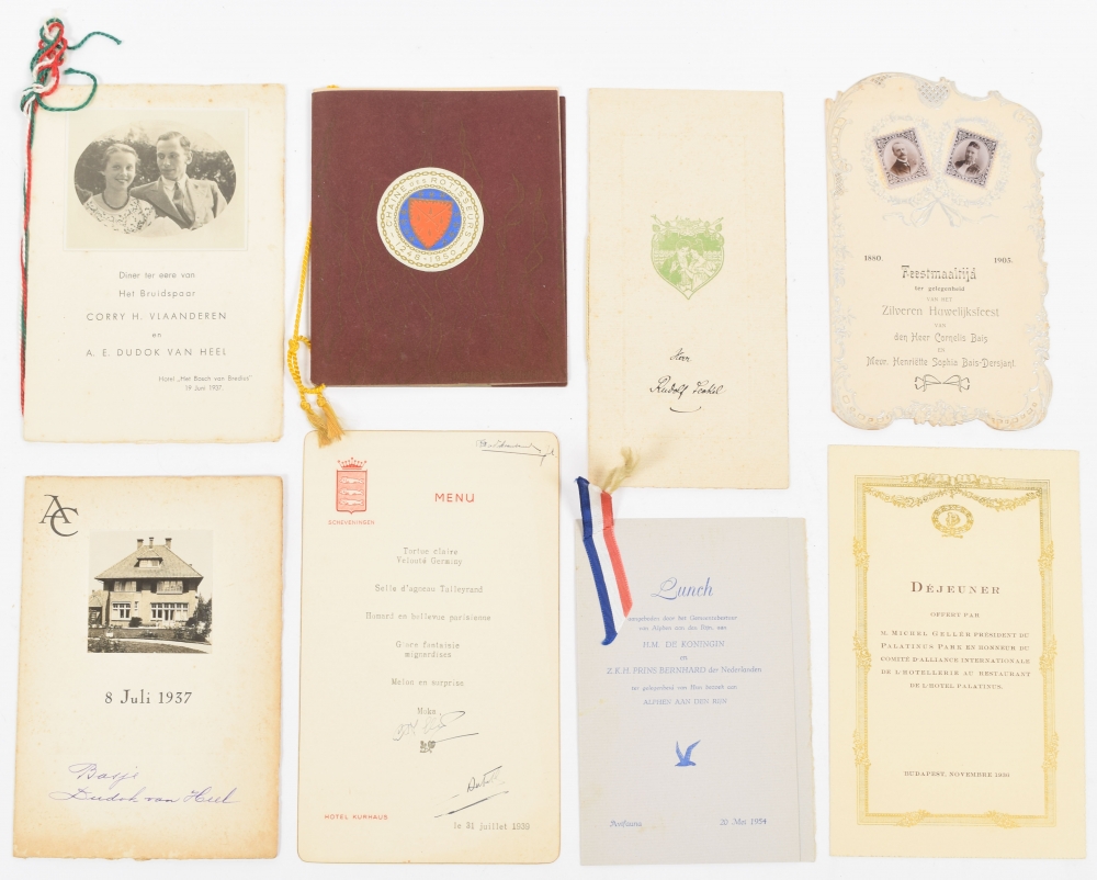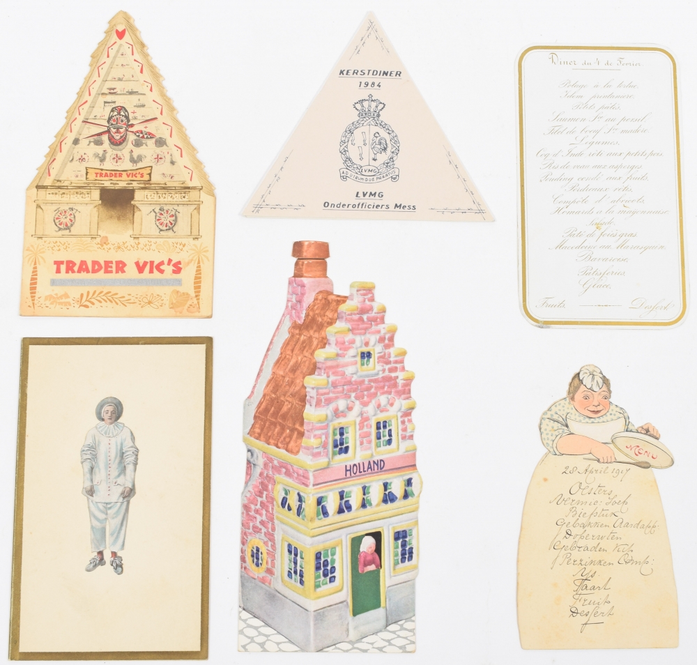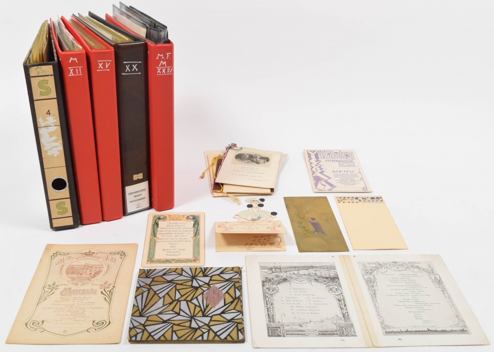 Incl. several art nouveau and art deco designs. Also incl. personified menus (e.g. wedding or anniversary) and studentica.