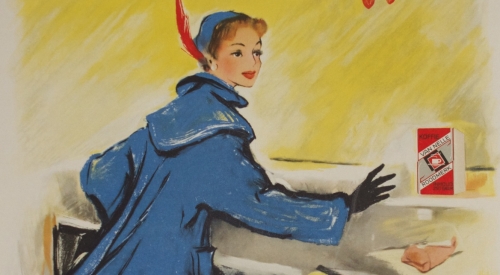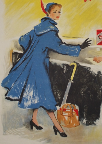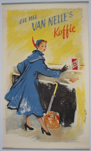 This item contains no English description. See the Dutch description: Ontwerp Nannie Kruijff, druk van Leer, Amsterdam, ca 1950. Orig. metalen latje boven- en onderzijde. 80 x 47 cm.