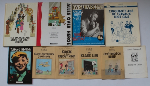 See the Dutch description: Het imaginair Museum van Kuifje, Vereniging voor tentoonstellingen van het Paleis voor schone kunsten te Brussel, 1979. Hc, met voor de gelegenheid afgestempelde ingeplakte zegel. 45 p. + Kuifje in Rotterdam, eerste tm vierde schrift. Tekst Ernst Pommerel, Omslagen Joost Swarte, 1977. - en 5 andere.