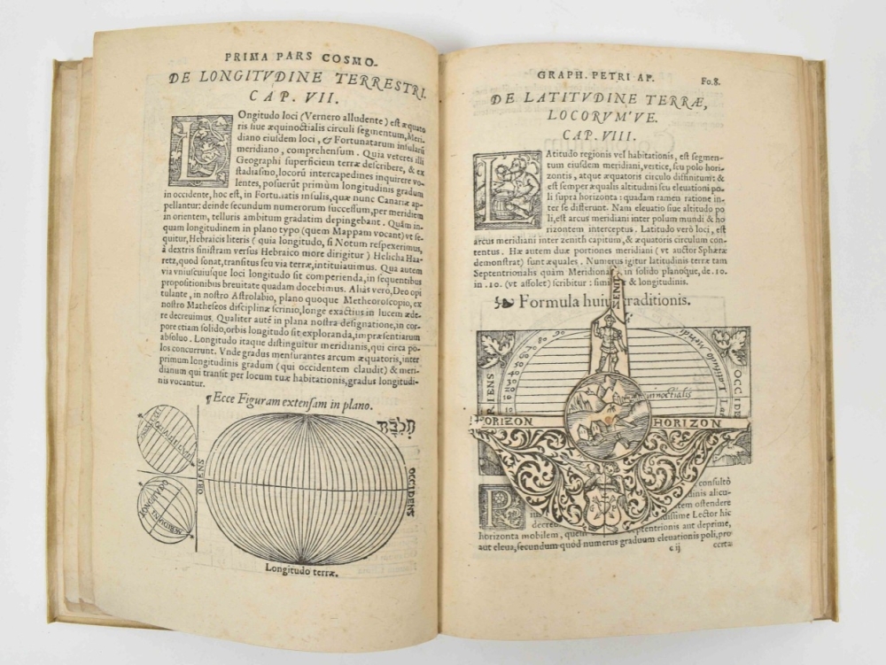 Very rare and important treatise on astronomy, navigation and the earth and its position in the universe by the German humanist Petrus Apianus (1495-1552), first published in 1524. It was largely based on Ptolemy's Geography.