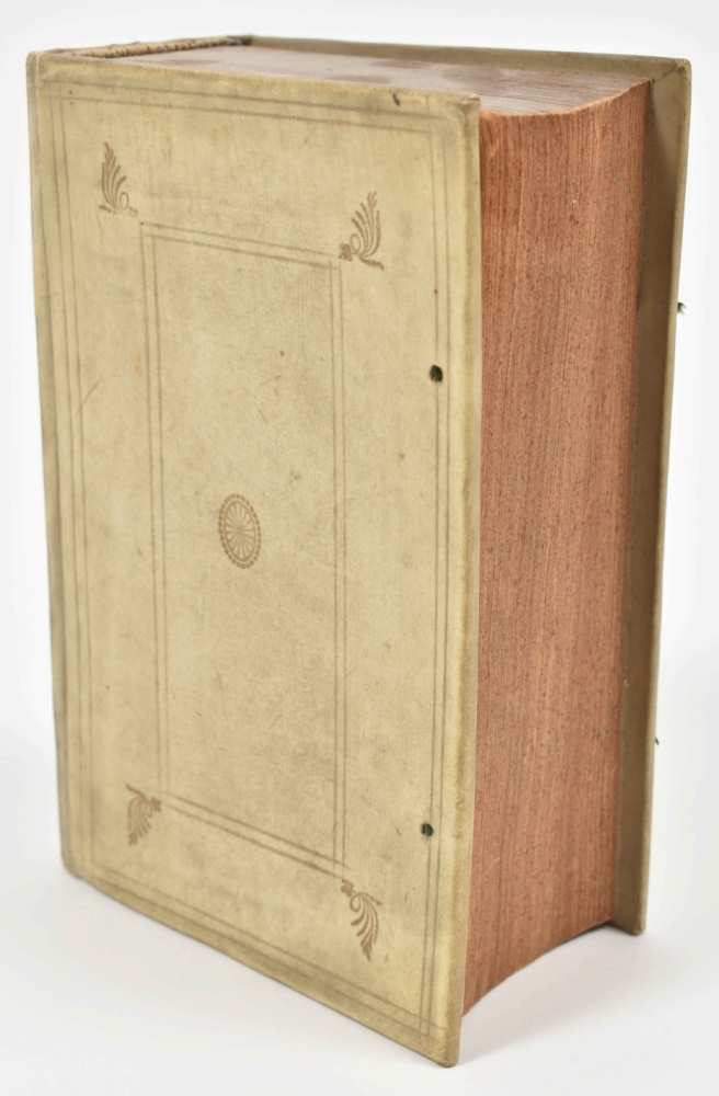 in quibus jus naturae & gentium, item juris publici praecipua explicantur (...) ejusdemque Dissertatione de Mari Libero (...). Amsterdam, apud Janssonio-Waesbergios, 1735, 3 parts in 1 vol., (24),XXXIX,(5),534; (2),539-1040; 43 Mare Liberum,(85 index) p., with engr. portrait of the author and frontisp., contemp. panelled vellum w. corner ornaments and central oval ornament, large 8vo.