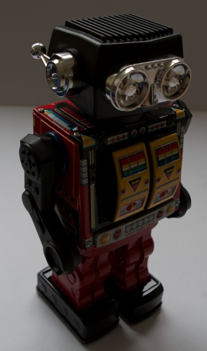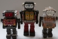See the Dutch description: Battery Operated Piston Robot + Battery Operated Missile Robot - en Rotate-o-matic super Astronaut Automatic action, S.H., made in Japan. Alle drie in nieuwstaat in originele doos.