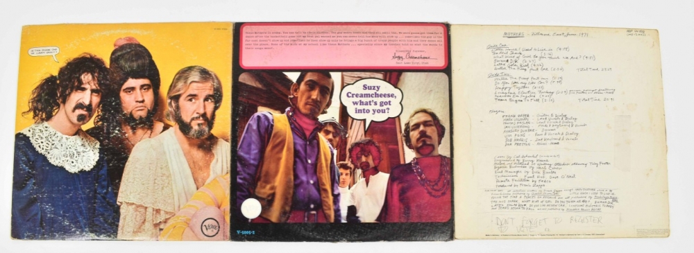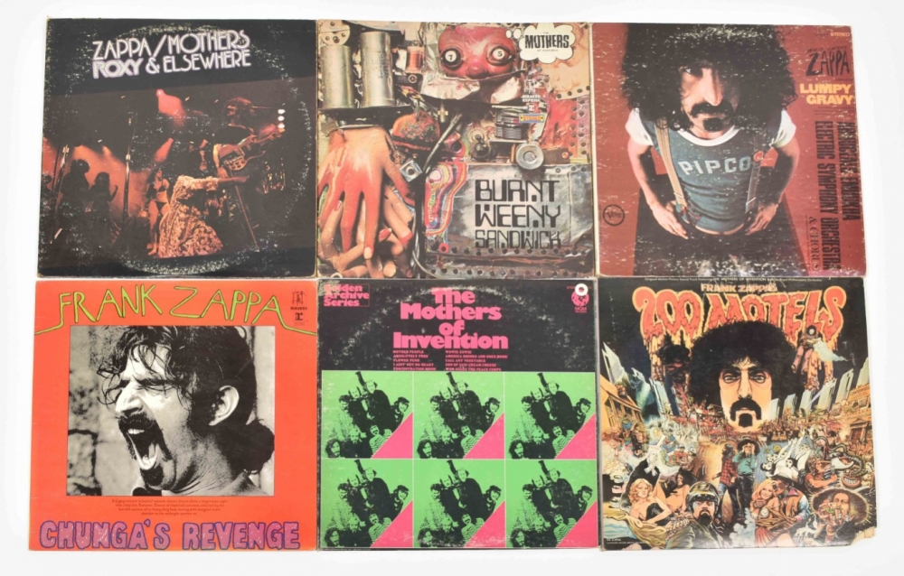 1) Freak Out! 1966, Verve V-5005-2. 2LP. 2) We're only in it for the Money. 1968, Verve V65045X. 3) Cruising with Ruben & The Jets. 1968, Verve V65055X. 4) The Mothers at the Fillmore East 1971. Reprise 44150. 5) Weasels ripped my Flesh. 1970, Reprise 2028. 6) Uncle Meat. 1969, Bizarre 2024. 2 LP.