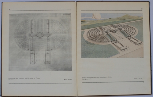 See the Dutch description: an der K.K. Akademie der Bildenden Kunste in Wien. Arbeiten seiner Schüler. Projekte Studien U. Skizzen. Verlag von Eduard Kosmack, Wien, 1912. 56 p. Gebonden met linnen rug.