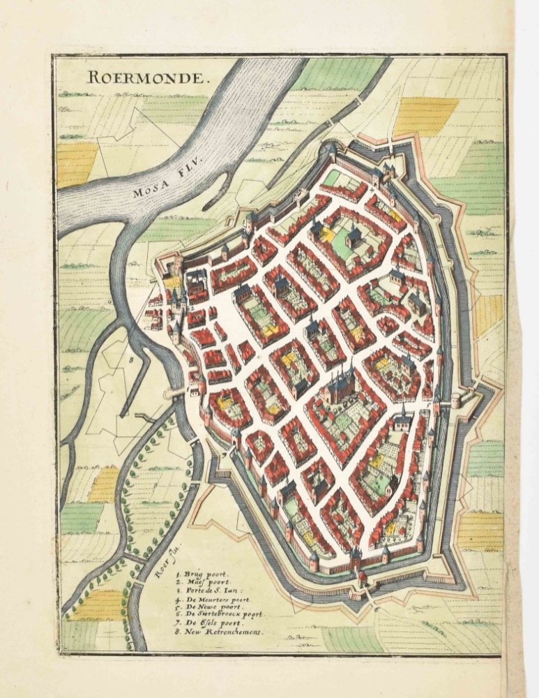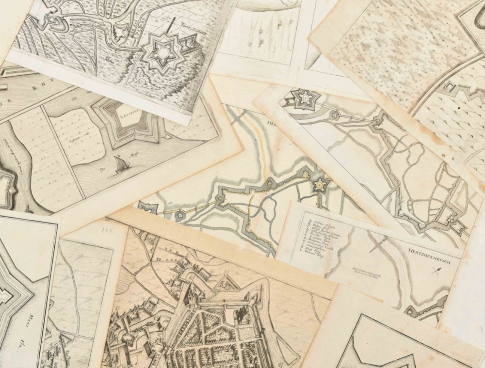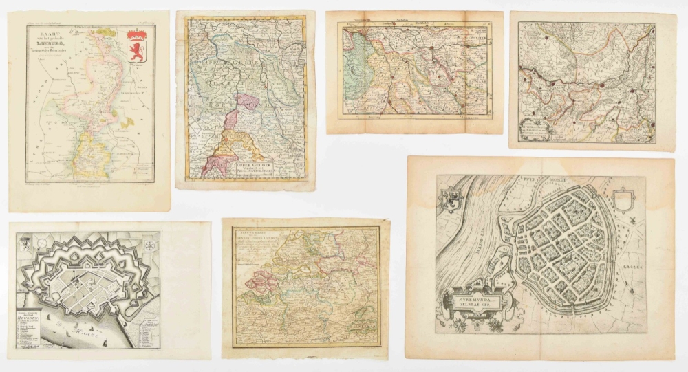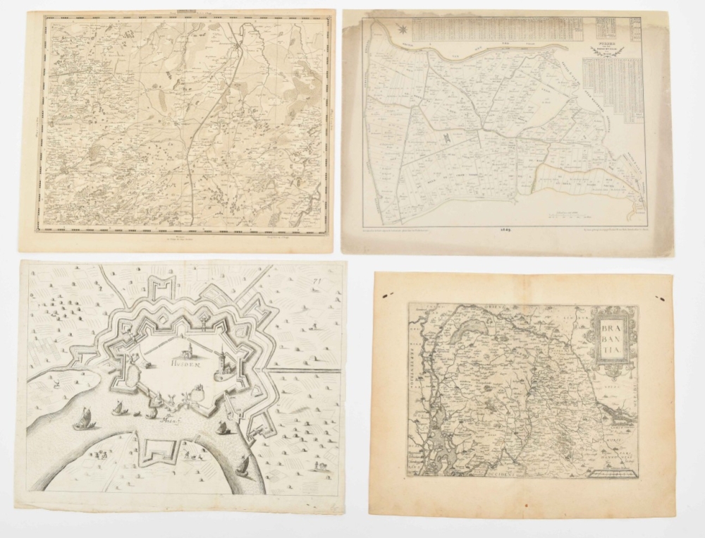 30 maps, plans and fortification plans of cities in Brabant incl. Breda, Bergen op Zoom, Den Bosch and Grave and 12 maps, plans and fortification plans of several cities in Limburg incl. Roermond and Maastricht, of which several coloured.