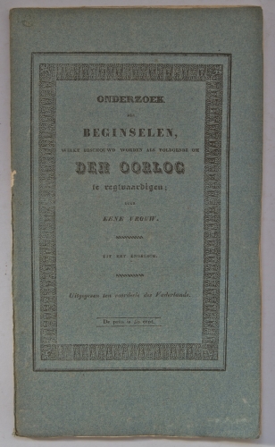 Onderzoek der Beginselen, welke beschouwd worden als voldoende om Den Oorlog te Regtvaardigen: Door eene Vrouw