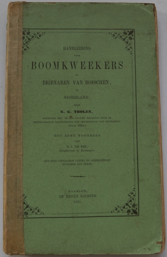 See the Dutch description: N.G. Tholen, Handleiding voor Boomkwekers en Eigenaren van Bosschen in Nederland. Met eene voorrede van H.C. Hall, hoogleraar te Groningen. Haarlem, De Erven Loosjes, 1855. Stevige papieren kaft, 267 pp. Met drie uitvouwbare ill. van gereedschappen achterin.