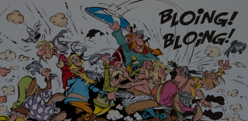 See the Dutch description: Uderzo/Goscinny, Dargaud, 1977. Introductie voor de Anglo-Amerikaanse Pers om op de diverse mogelijkheden voor publicatie te wijzen. Bruine linnen band met goudopdruk. 128 p. waarin een introductie, zwart-wit stroken en het complete verhaal "the Great Crossing". Eén van de slechts 25 uitgebrachte exemplaren.