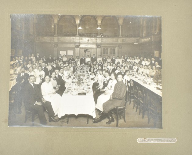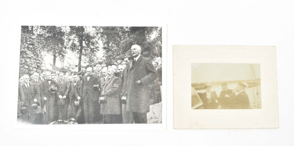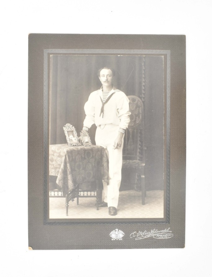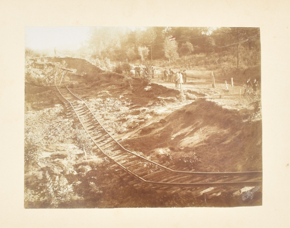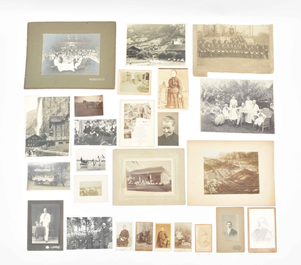 Added: 20 other miscell. photographs, incl. a photograph of a large Javanese building by Rabin, Java, a nice menu-card with cut-out composition of miniature photographs and a photograph of a stretch of destroyed railway-tracks. (total 40)