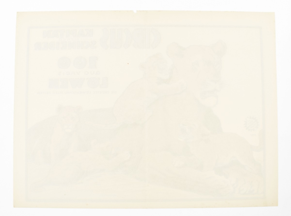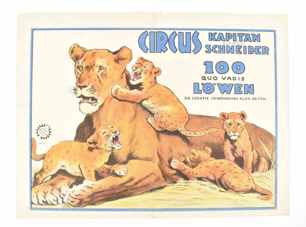 Der grösste Löwenschau alles Zeiten. Friedländer, Hamburg, 1926. 47 x 36 cm. Lith. no. 8100.