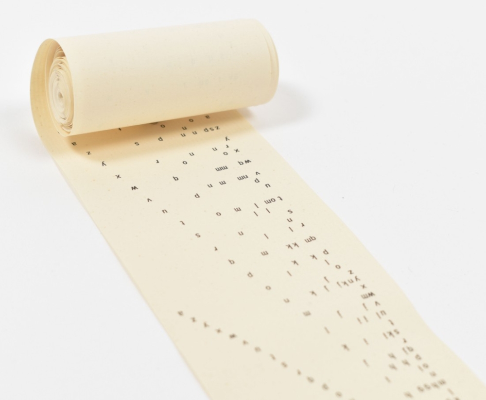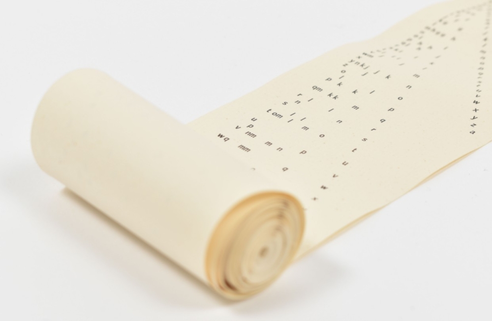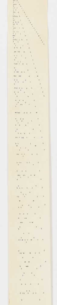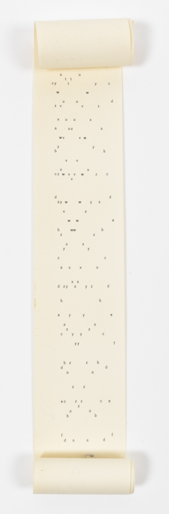 New York, Fluxus Editions, 1963. Three paper leaves, glued together and rolled. 222 x 6 cm. Black offset on off-white paper, printed on one side.