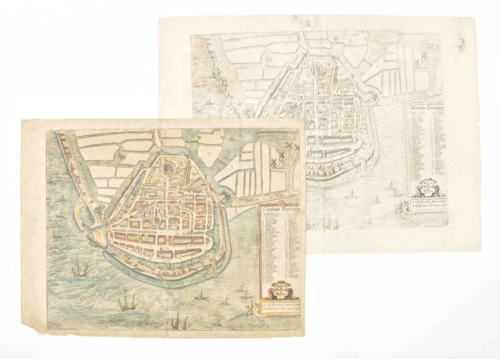 From Braun & Hoogenberg (1581), Blaeu, Stedenboeck (1649), De Wit (1690) and Jannsonius/ Pitt/ Swart (ca. 1685), all double-folio size, with middle-fold or folded several times, as published.