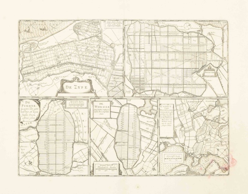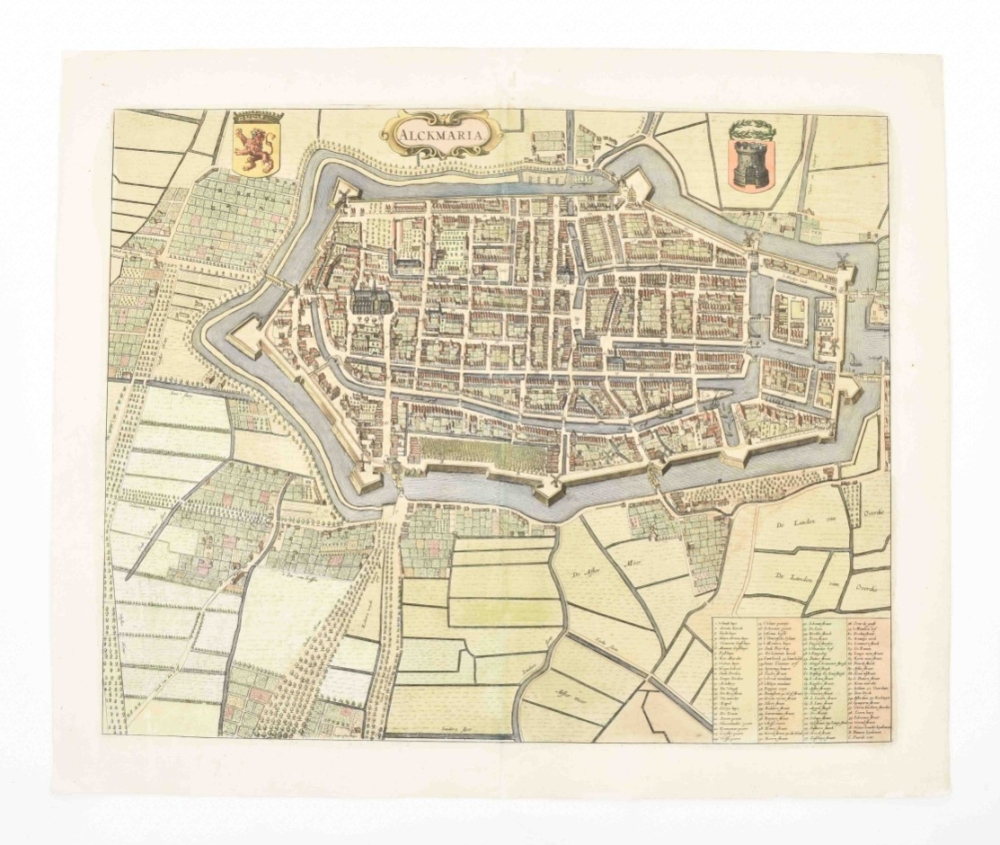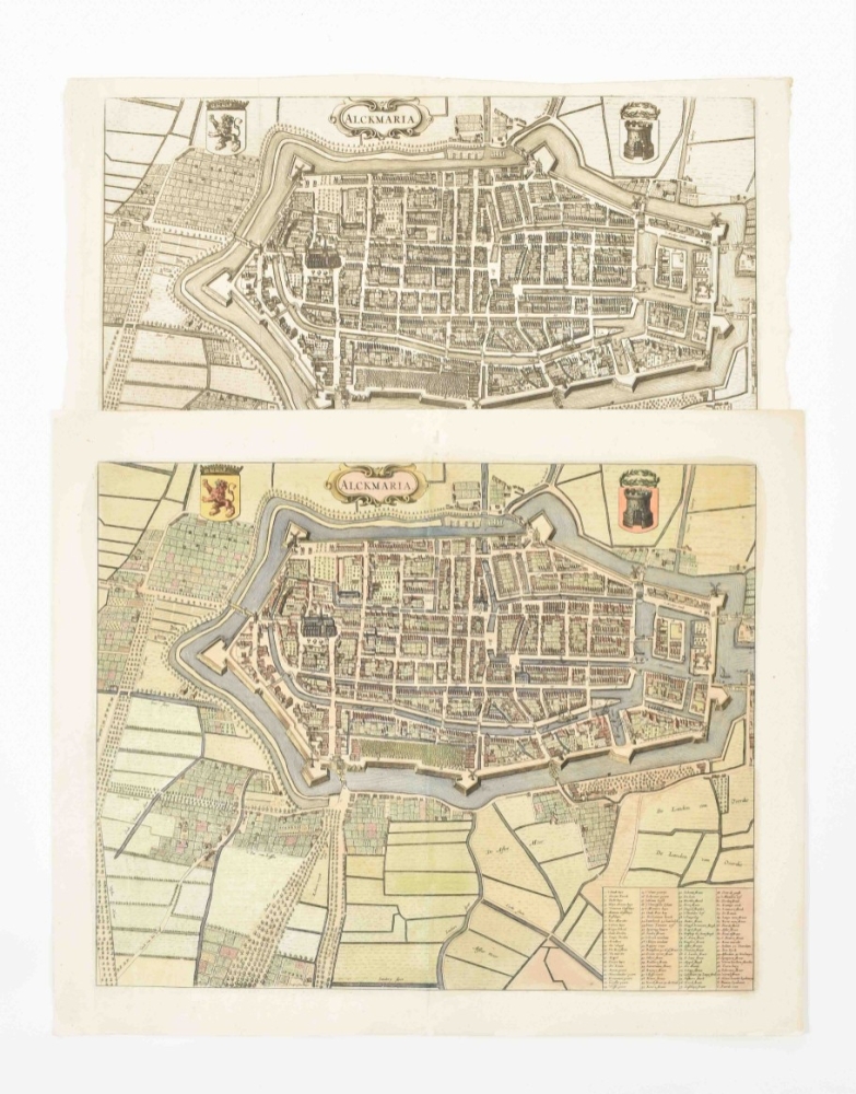 Comprises: (1-2) Two maps of De Zype, Beemster, De Purmer, De Wormer and Waterland (1x handcol. and 1x uncol.). (3-5) Three plans of Alkmaar (1x handcol., without address but w. letterpress text verso (Blaeu), 1x uncol. w. address F. de Wit and 1x uncol. without address and without text on verso). (6-7) Two plans of Medemblik (both uncol., 1x w. address F. de Wit, the other w. address J. Blaeu). (8-9) Two plans of Enkhuizen from Braun & Hoogenberg (1x col. and 1x uncol.). (10-12) Three different, uncol. variants of a plan of Enkhuizen, incl. an interesting (proof?) state before the cartouche, coat-of-arms and legend were added (total 12).