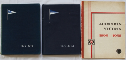 Memorial book published on the occasion of the 40th anniversary 1879-1919. 322 p. bound in linen. + Memorial book published on the occasion of the 45th anniversary 1879-1924. Bound in linen, 168 p. + Alkmaarse Voetbalvereniging Alcmaria Victrix 1898-1938. 40 p. Stapled. With insert leaf.