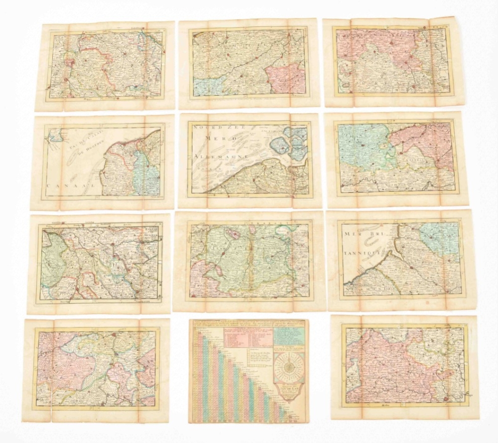 and Belgium. 18th to 19th cent. 8vo and 4to. Collection of approx. 100 sm. maps w. some duplicates. General, provincial, and regional maps of the Netherlands and Belgium. Lithogr., steel and copper engr. by a.o.: Le Rouge; Robert; De Lat (approx. 20 Belgian regional maps); De Leth; Banse; Binet; Kraijenhoff; Reding; Witkamp; and Braakensiek. Many col. In 1 folio imitation leather folder. Sold as a collection of prints, not subject to return.
