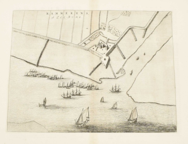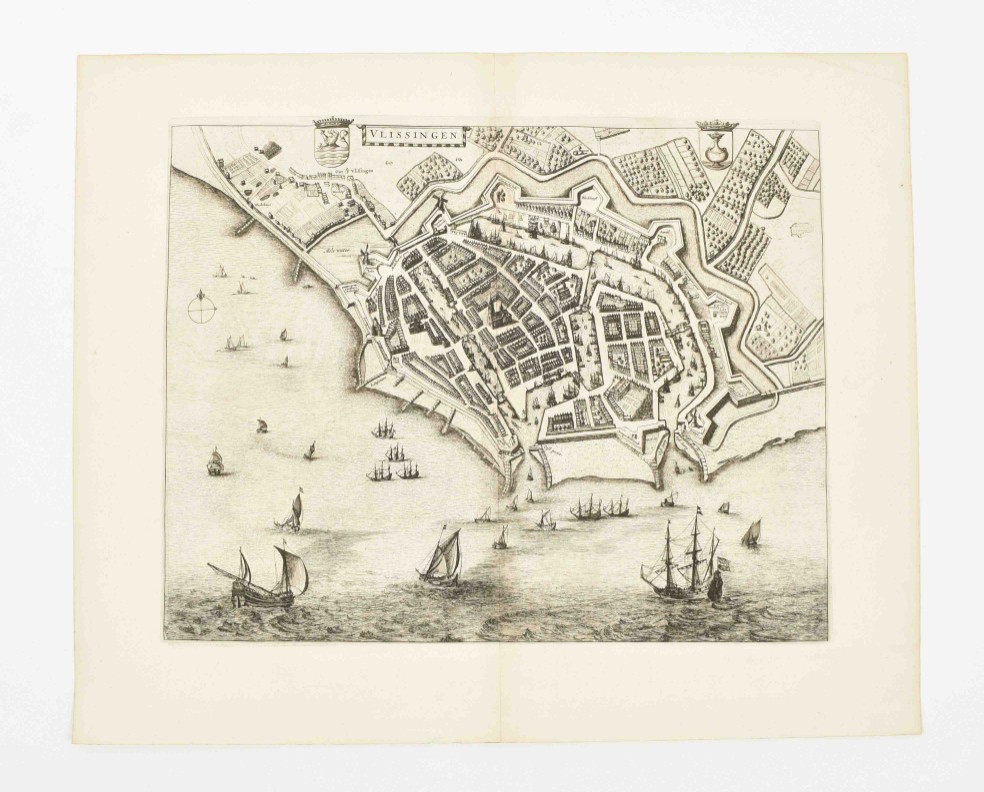 (2) Joan Blaeu. Vlissingen, verso Vlissinga. Double folio plan from another Latin ed. (3) and (4) Joan Blaeu. Rammekens oft Zee-Burg, Latin eds. Amst., 1649. 37 x 48.5 cm. (total 4)