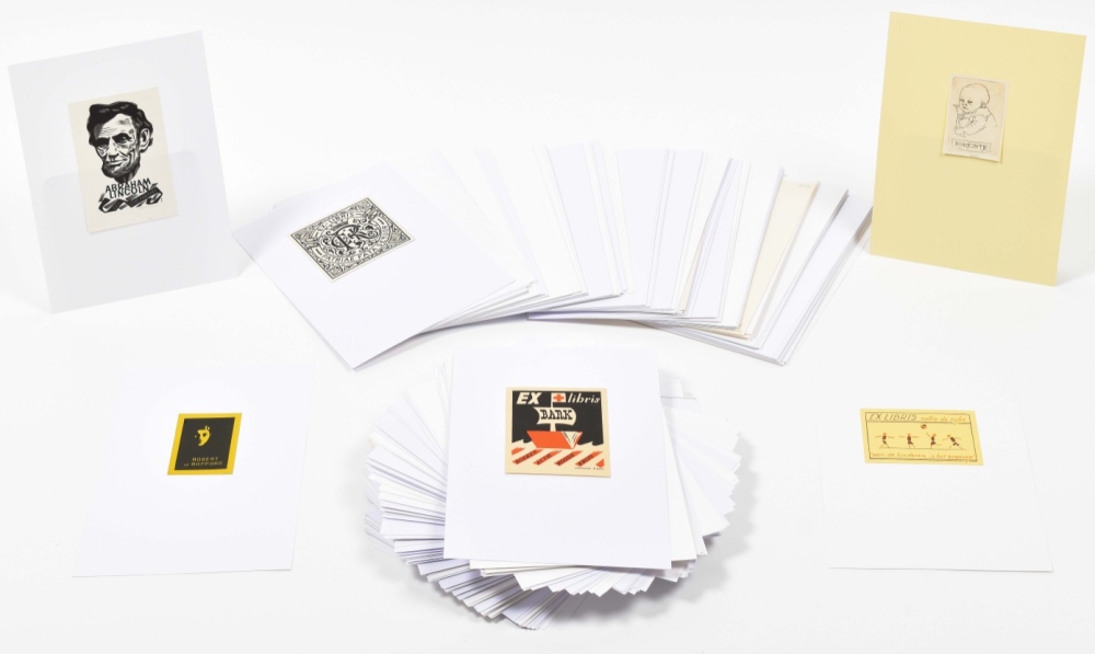 Incl. some duplicates/ variants. Comprised of ex libris for a.o.: P.J. Raadsheer; Riet Ruisch-Rackwitsz; Fons Rademakers (computer print 1968); Jetty Ram; H.A. Ravenswaay; N. Reinke; Hans Remus; Joh. Resseler; Gert van Ree; W.C.A. Riemvis; T. Rietveld; J.H. Ritman; R. Ritskes; J. Rockx; H. Roest; P. Roose; G. Roosink; Bosch van Rosenthal; Berend Roskam; W.J. Rozendaal; Bart Ruitenberg; Russisch Koor; Ans Ruijgrok; R.J.A. te Rijdt; and D.C. van Rijssen (total approx. 450 in 3 portfolios)