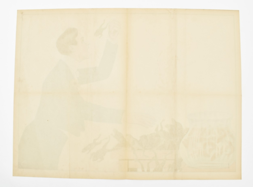 *Mac Norton was a magician and vaudeville performer. He was famous for swallowing and regurgitating live animals such as fish, turtles and frogs, and could drink a 100 glasses of beer in 10 minutes. Several versions of this image are known, this is the one without printed title.