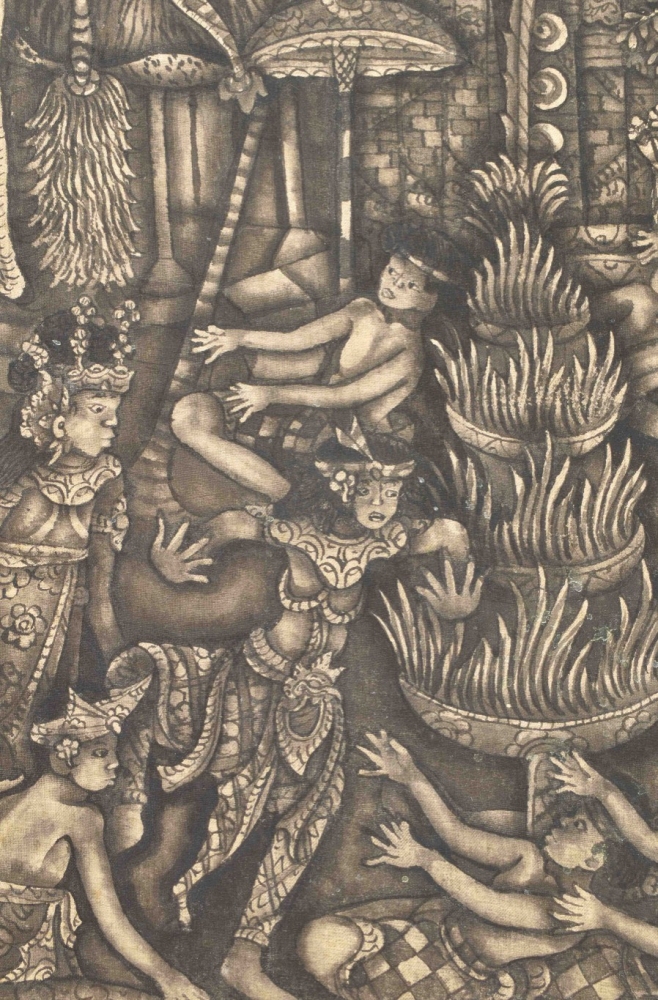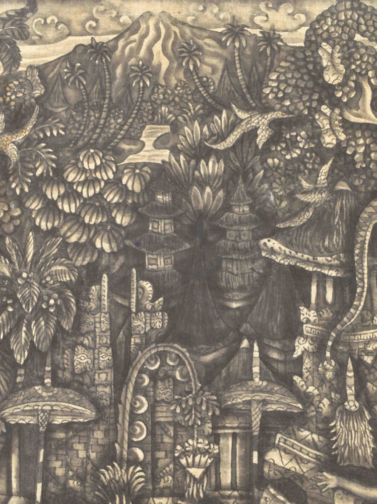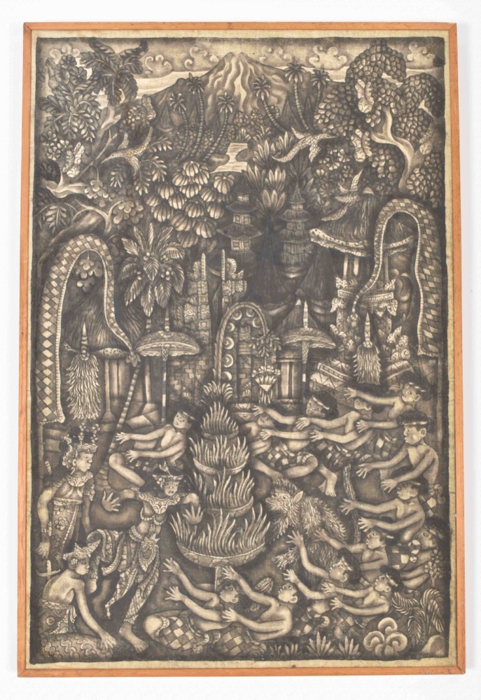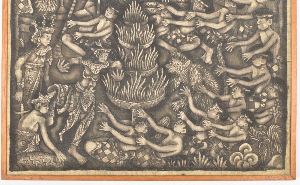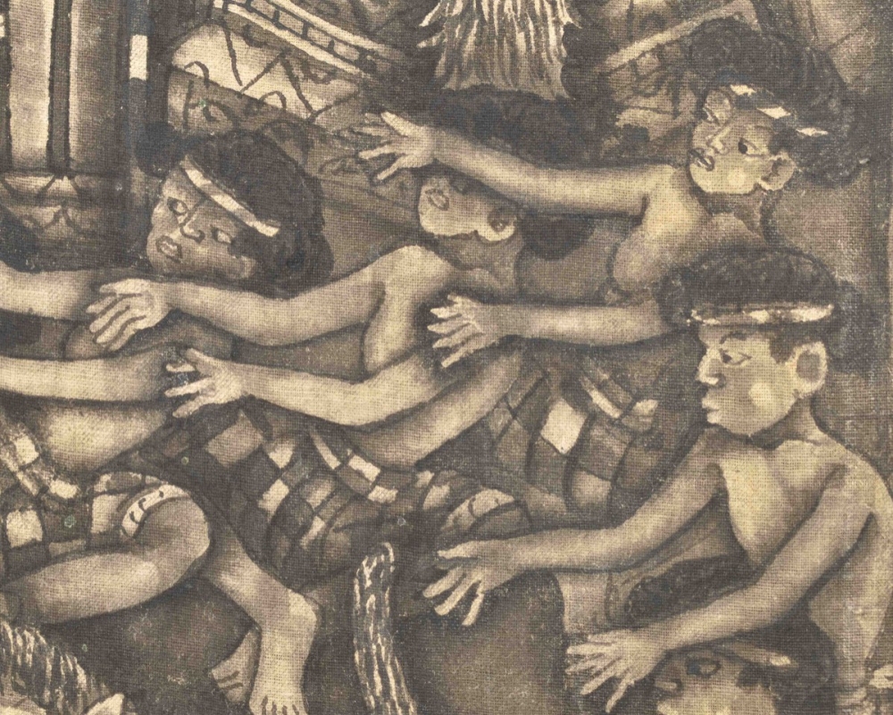 Gouache in various shades of grey on canvas, 58.5 x 39 cm, framed without glass.
