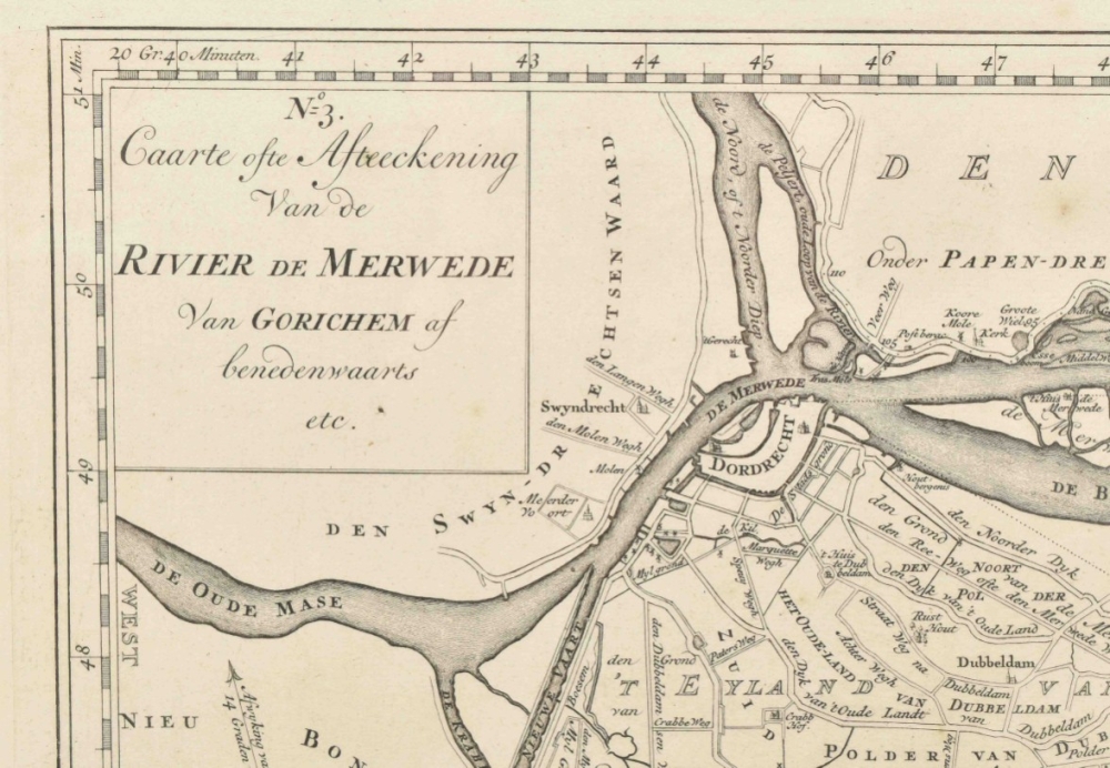 [River maps. Merwede] Three engraved maps by D. Koster after N. Cruquius