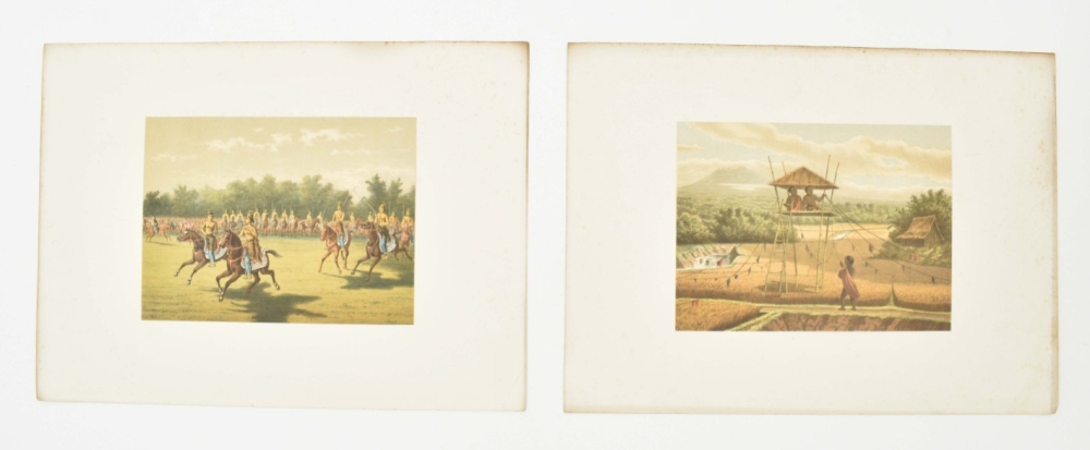[M.T.H. Perelaer and W.A. van Rees, drawings by J. C. Rappard. Leiden, A.W. Sijthoff, 1881-1883. 4 vol.] Collection of 64 loose chromolithogr. plates from this immensely popular work by two of the best known 19th cent. writers on Indonesia.