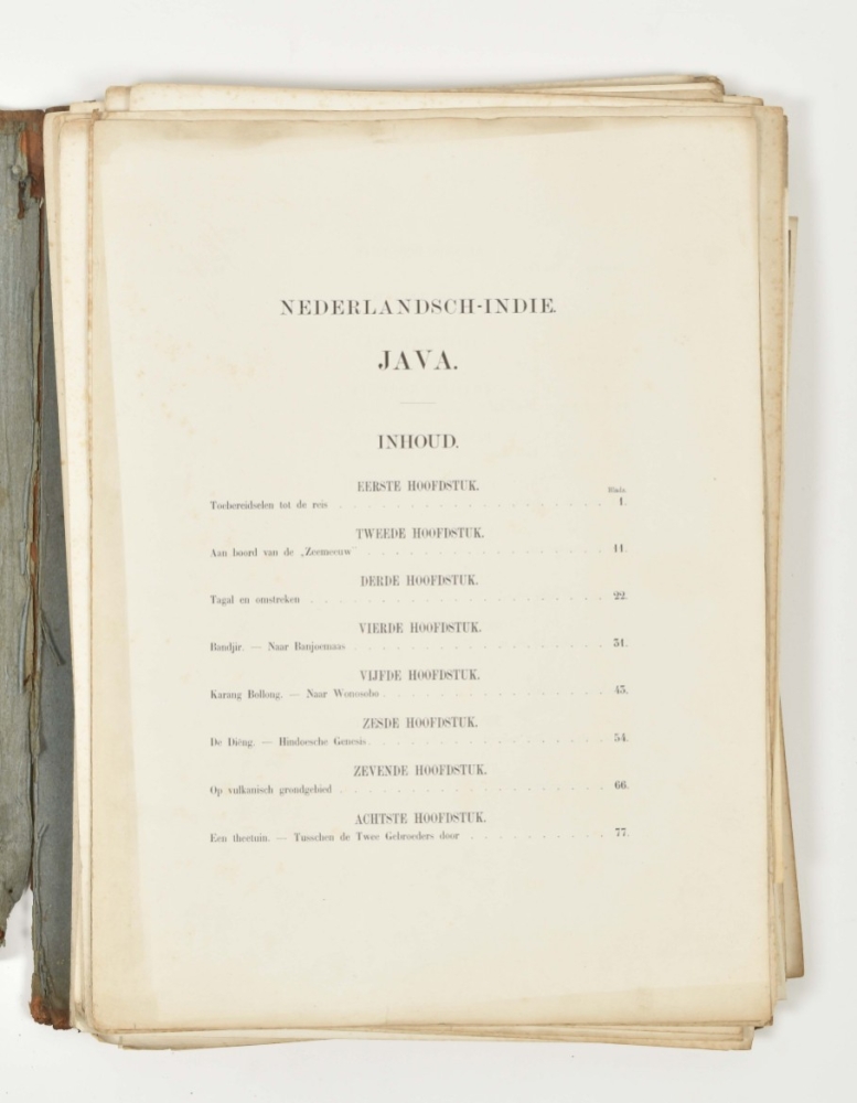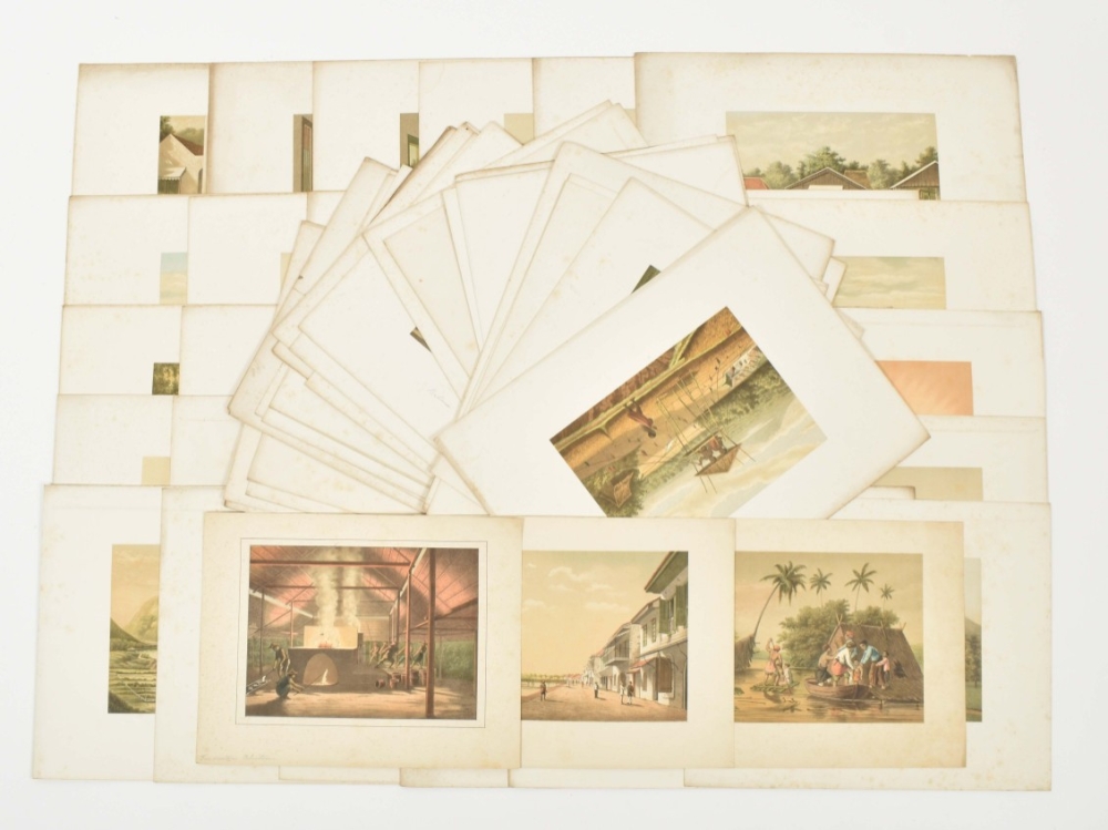 Loose in 1 non-orig. portfolio, some discol. around edges, plates in excellent condition. Most plates probably come from vol. 1 (Batavia) and vol. 3 (Java), as plate indices from those vols. are incl.