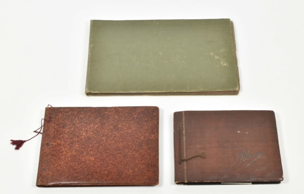Many mounted on 16 blue paper lvs., 11 photogr. loose/ loosely inserted, various sizes (incl. panoramas), w. manuscript captions dated 1913-1926, org. cl., obl. large folio.