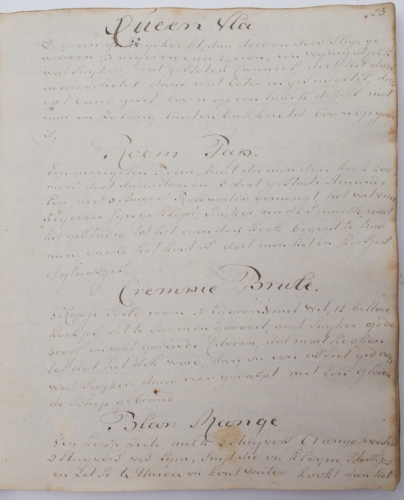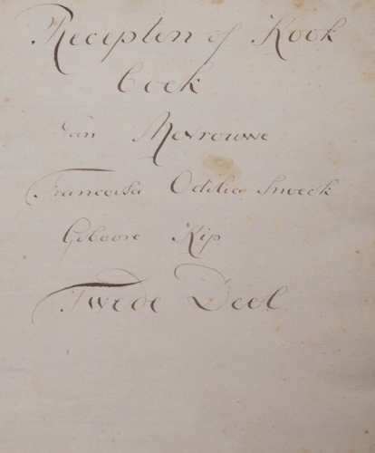 Recepten of Kook boek Van Mevrouwe Francoisa Odilia Snoeck Geboore Kip Tweede Deel.