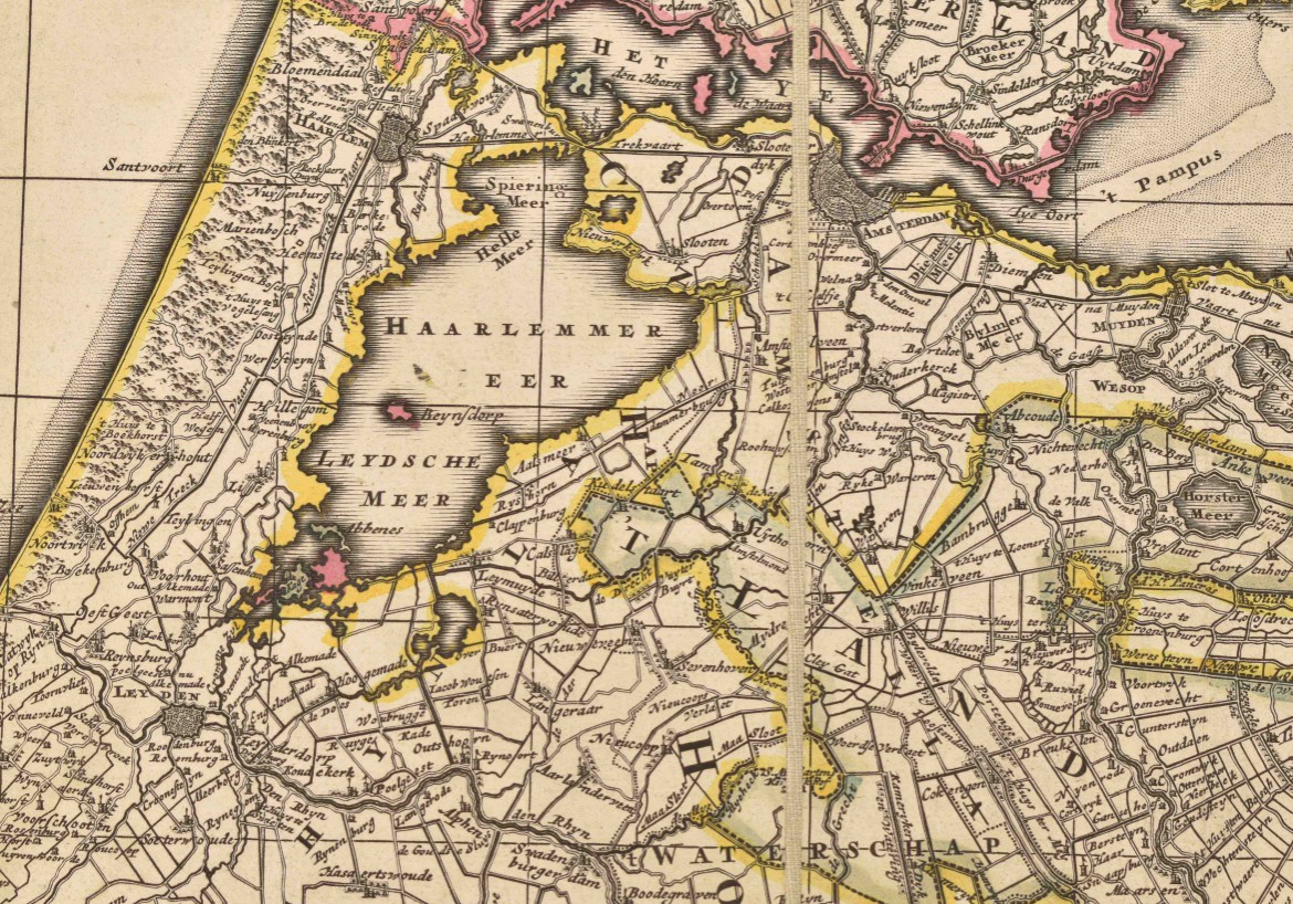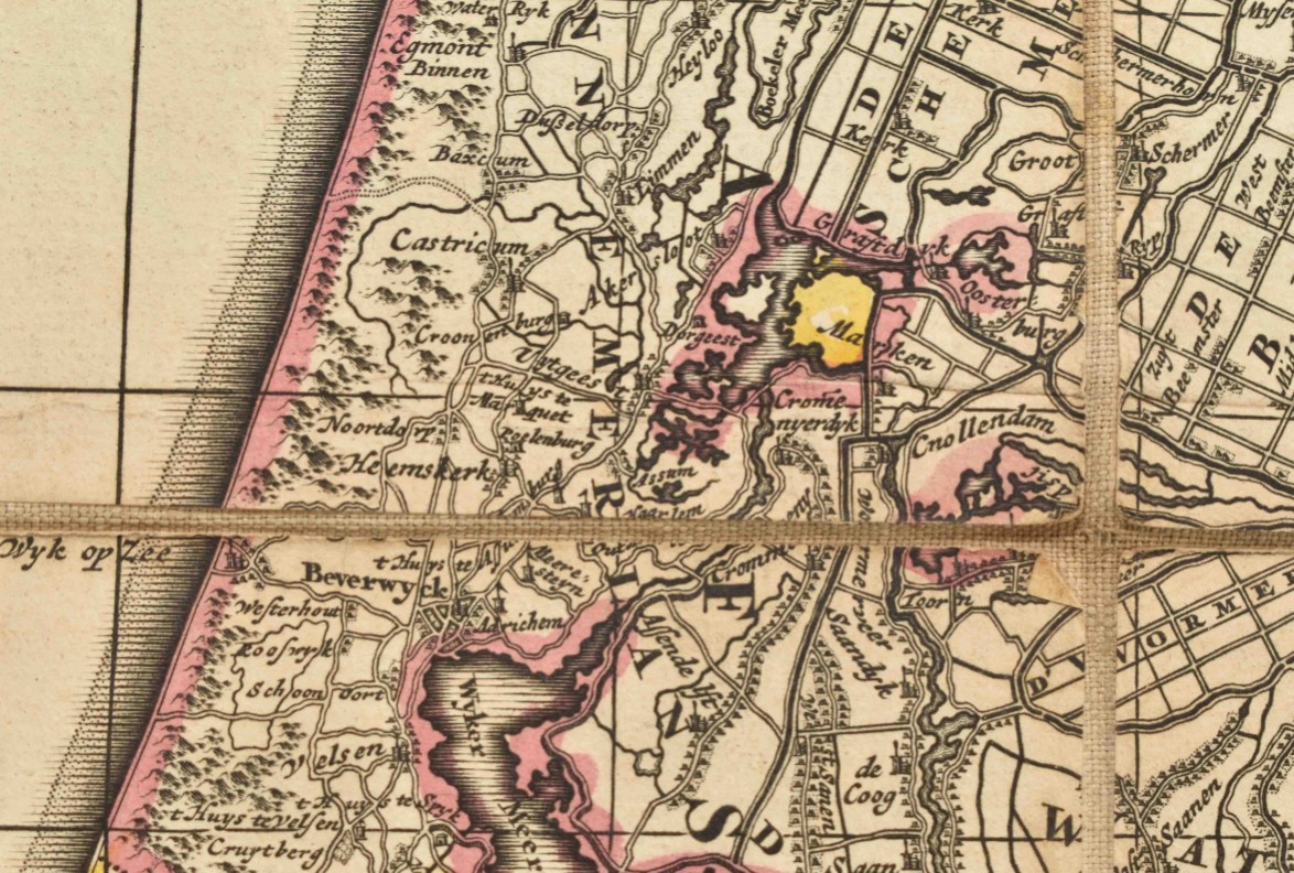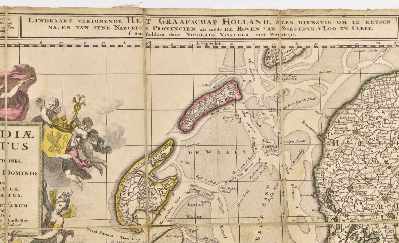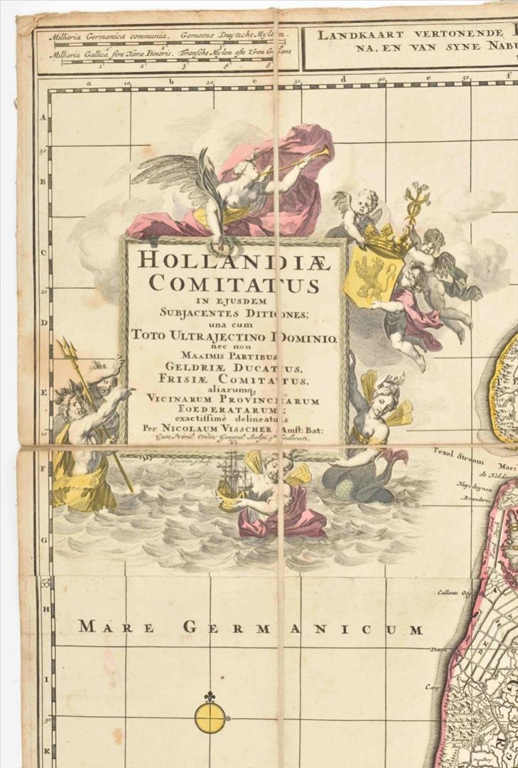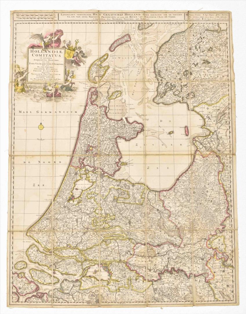 Amst., N. Visscher, 1696. 75 x 56.5 cm. Engr. map by N. Visscher, cartouche by G. Gouwen. Fold. map mounted on linen w. handcol. outlines.