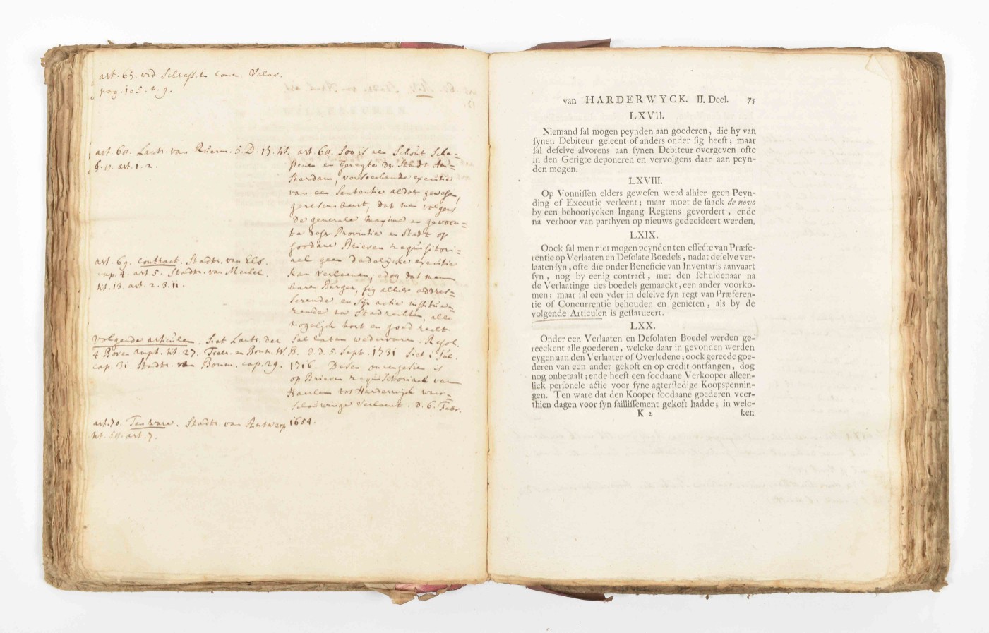 Contains extensive contemp. manuscript annotations in ink, occas. marginal annotations. Binding shabby and worn, edges frayed. Contents in good condition.
