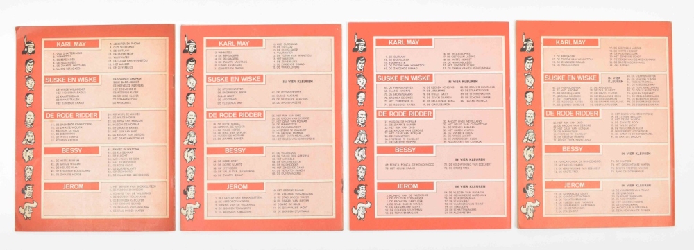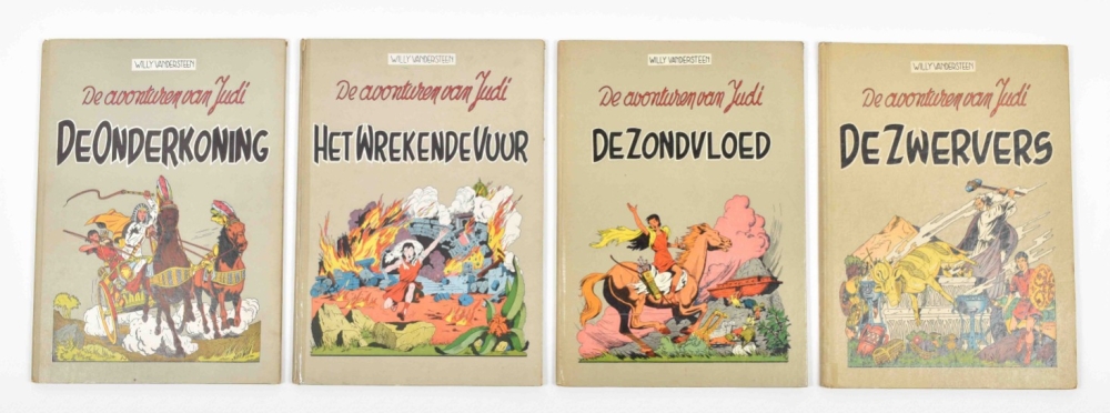 De Rammelende Rally. Published by Toeristische Federatie van de Provincie Antwerpen, 1957. 32 p. With: (2) Snoek vol. 1, 3, 6 and 7, Studio Vandersteen, 1966-69. (3) De Avonturen van Judi. vol. 1-4, Sheed & Ward, Antwerpen, 1952-58. Vol. 2 back rest. with tape, vol. 4 small strip of tape at bottom and upper part of back. Overall in very good condition.