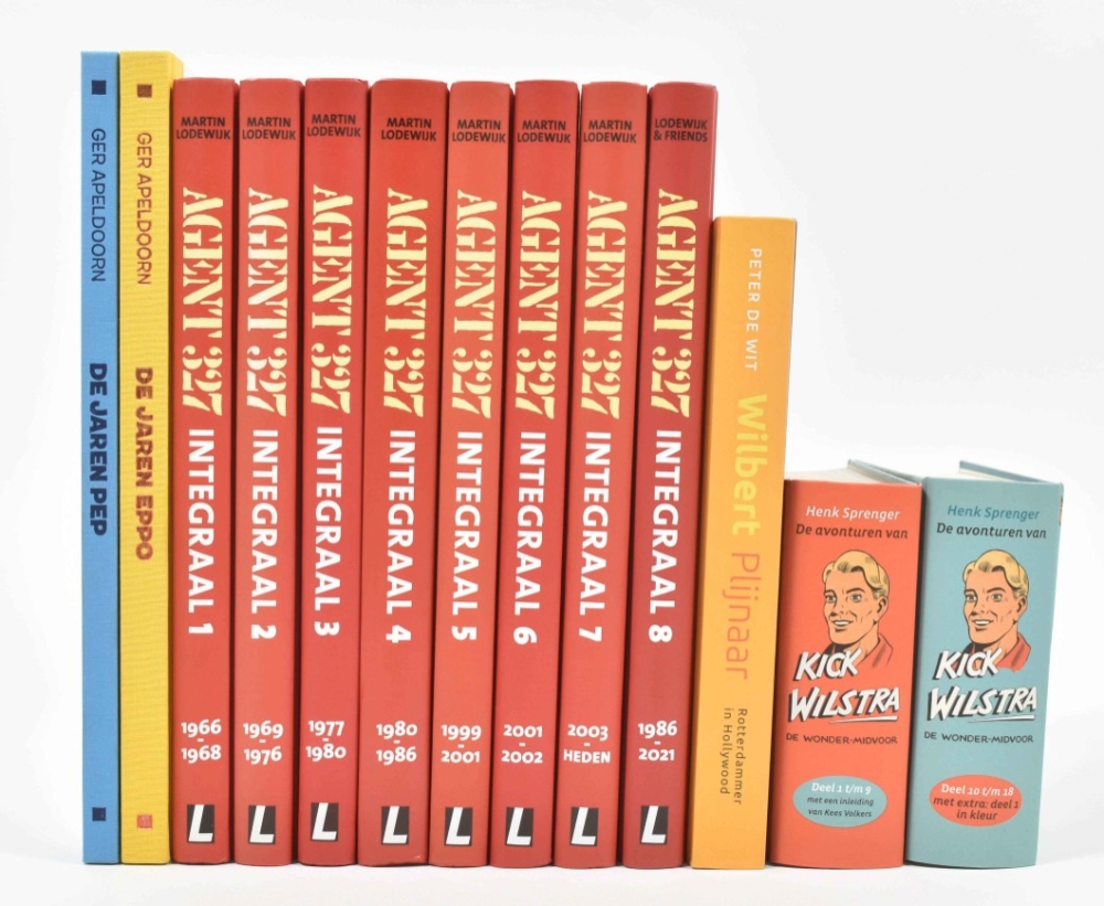 Integraal series, vols. 1-8. Uitgeverij, 2018-2021. (2) Ger Apeldoorn. De Jaren Pep/De Jaren Eppo. Don Lawrence Collection, 2014-2018. 2 vols. Including 4 loose prints. Hc. (3) Henk Sprenger. De avonturen van Kick Wilstra. 2 vols. Stokerkade and Voetbal Legends, 2014. Oblong hcs. -and 1 more.