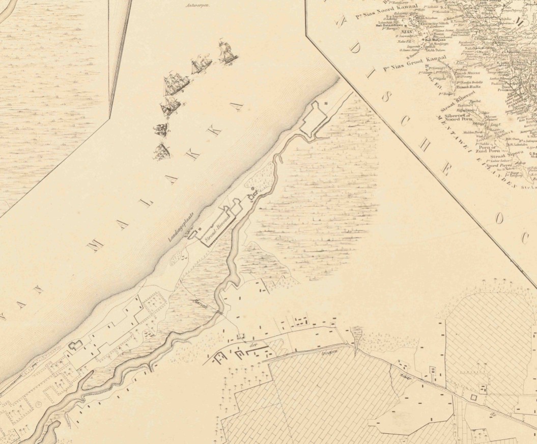 nabij de hoofd-plaats". Lithogr. map, 46 x 67 cm, by J. Smulders & Co for A.C. Kruseman, n.d. (ca. 1873).