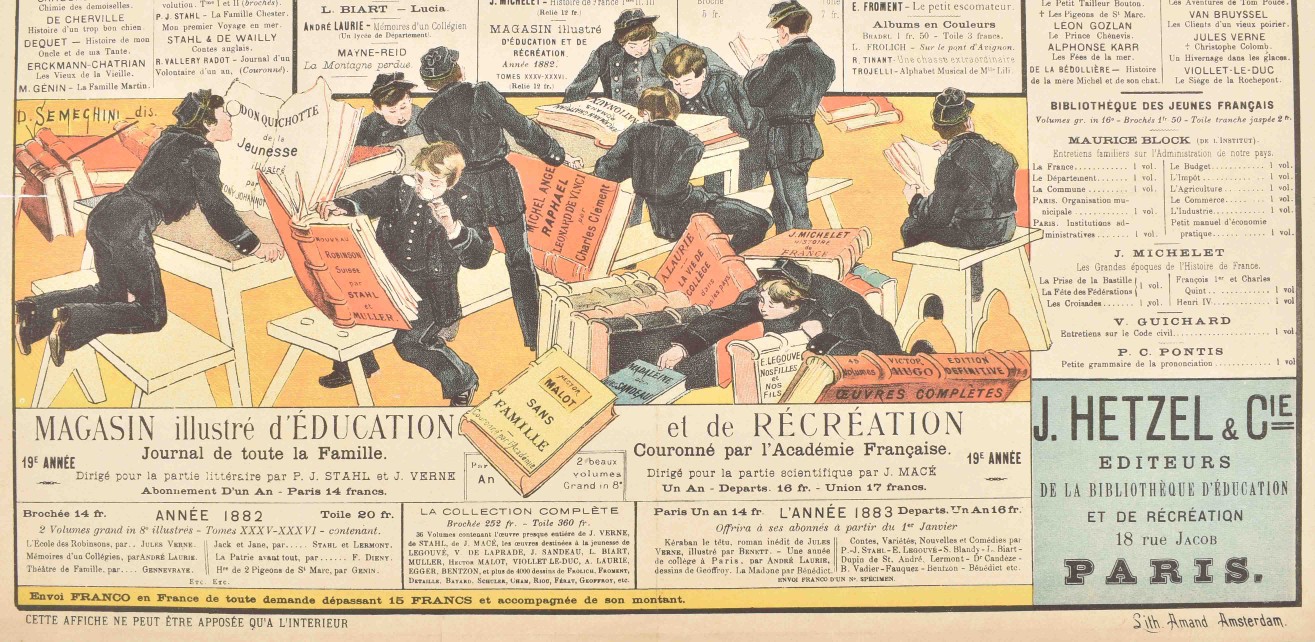 Col. lithogr. poster, 59.5 x 46 cm. Amst., Amand for J. Hetzel & Cie in Paris, (1883).