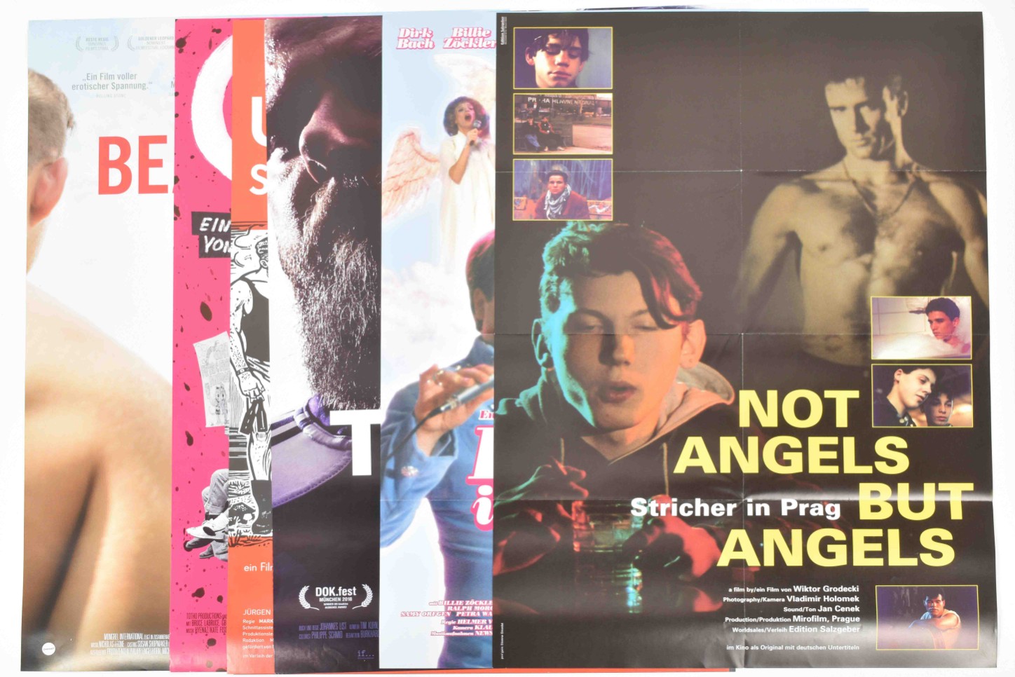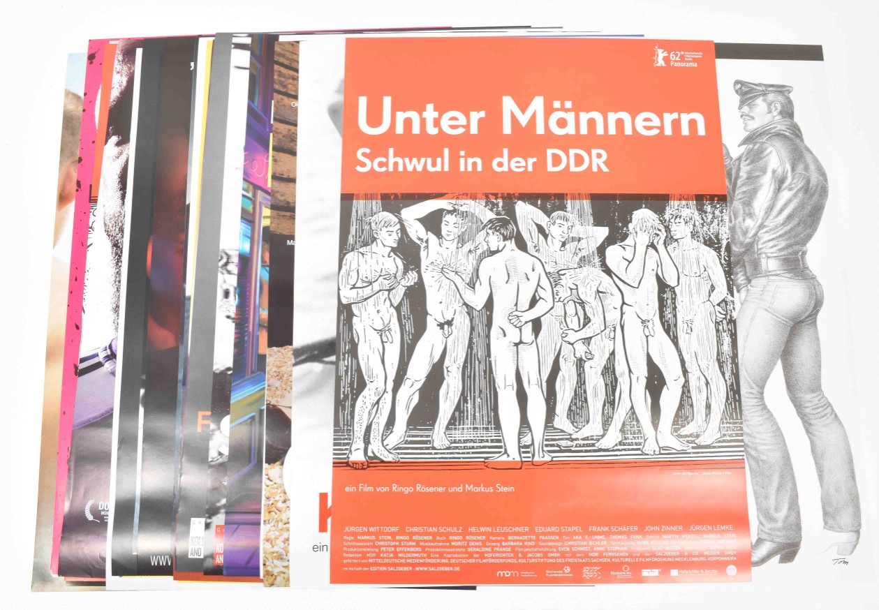 (2) Ünter Männern. Schwul in der DDR. Ein Film von Ringo Rösener und Markus Stein. Des. by Jürgen Wittdorf. Berlin, Edition Salzgeber, (2012). (3) 100 Tage, Genosse Soldat. Ein Film von Hussein Erkenov. Berlin, Berlinale, 1990. Offset, 84 x 59.5 cm. (4) The Garden. Ein Film von Derek Jarman. Berlin, Edition Salzgeber, 1990. Offset, 84 x 59.5 cm. (5) Katz und Maus. Ein Film von Hansjürgen Pohland nach der novelle von Günter Grass. Transit Film, 1967. Offset, 84 x 59.5 cm. -and 19 other German posters on subjects such as genderqueer, sexuality and other LGBTQ+ themes. (total 23)