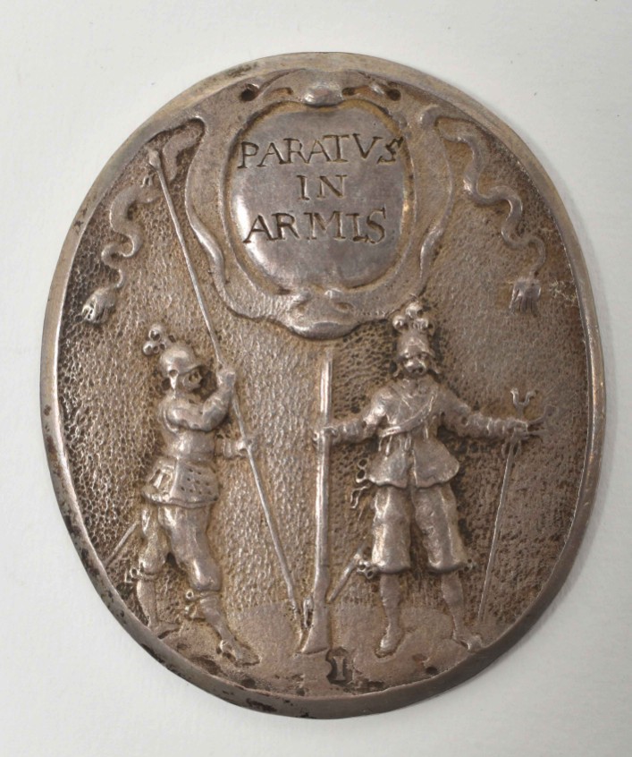 Schutterspenning, 1654. Monogrammed I.S. Silver. 58 x 46 mm (oval).