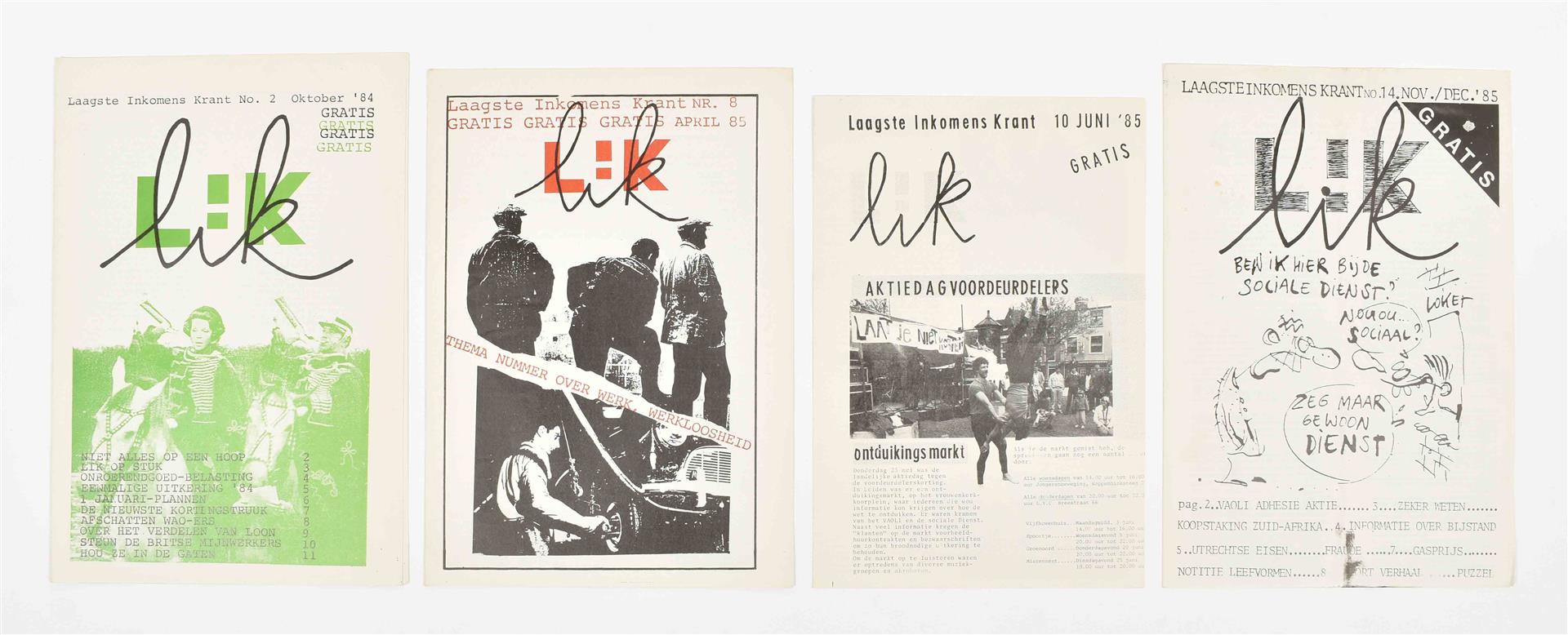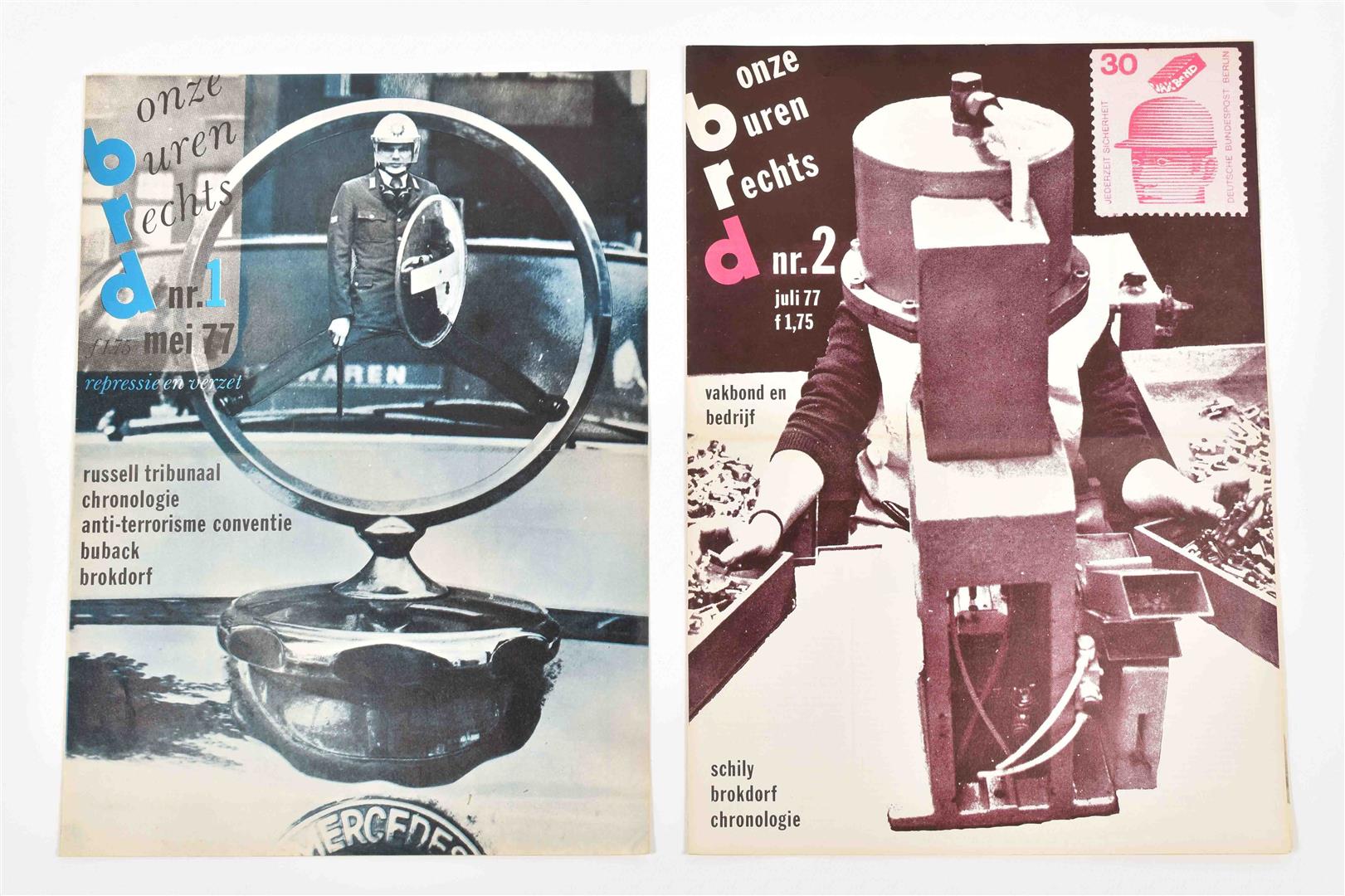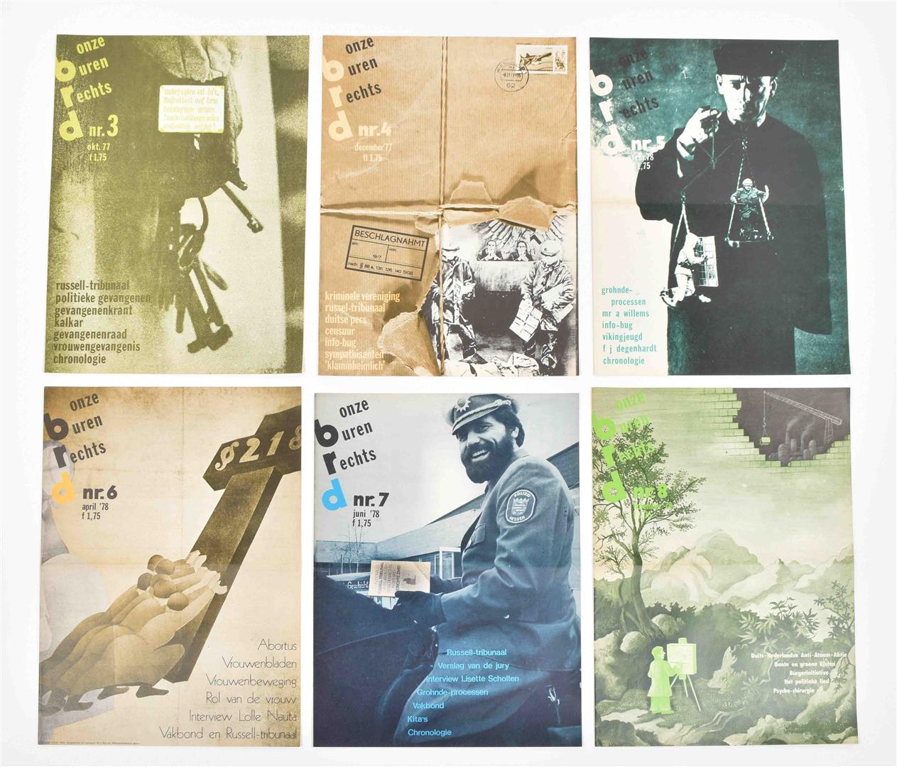 (1) Onze buren rechts. 8 issues, May 1977- Nov. 1978. (2) Vrijbrief. Tegenkrant van Amsterdamse jongeren. 6 issues, March 1981 - March 1983. (3) Afval. Maandelijks blad van en voor de anti kern energiebeweging. 8 issues, Sept. 1981 - May 1982. (4) Laagste Inkomens Krant. 4 issues, Oct. 1984 - Dec. 1985. -and 42 other similar magazines, periodicals and booklets, incl. a.o.: Mondain Den Haag, De deining, Witheek, Kabouterkrant, De krisis krant, De klerenkrant and Sub. Most 1980s.