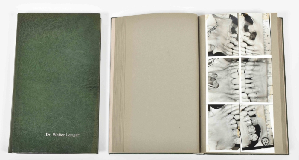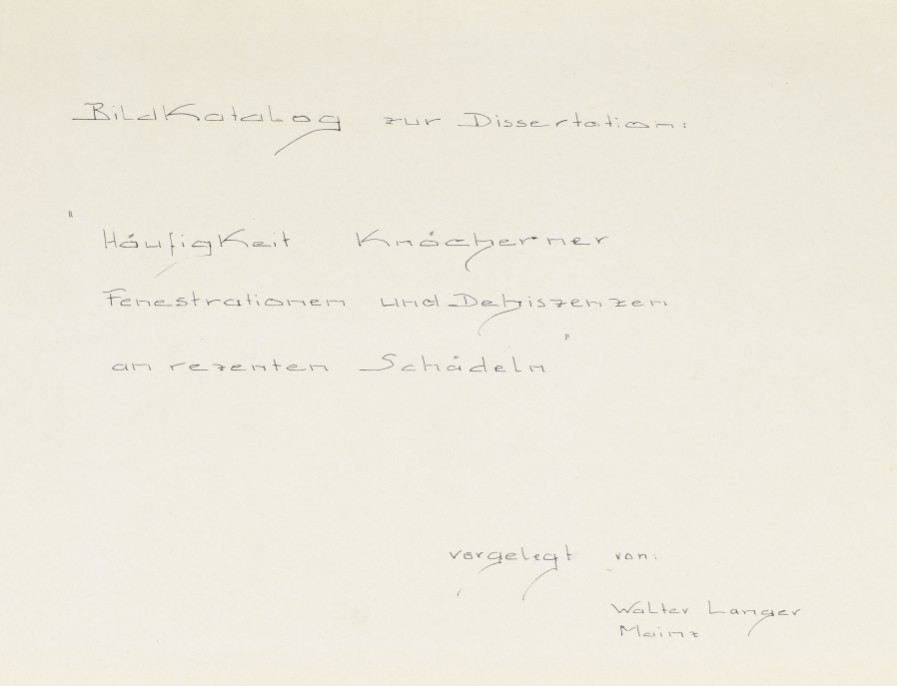 Approx. 700 photos. Dissertation entitled "Häufigkeit knöcherner fenestationen und dehiszenzen an rezenten schädeln" by Walter Langer (Mainz), n.d. Unif. bound in 2 green leather portfolios w. silver lettering.