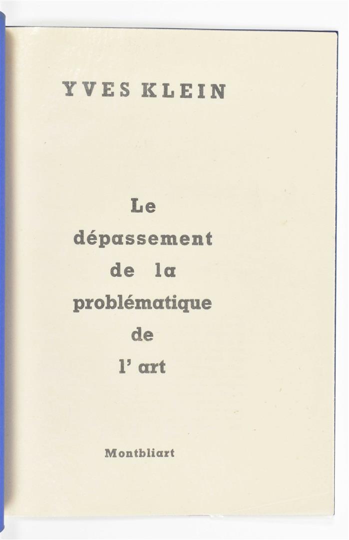 On the first page Klein introduces himself as 'Artiste Peintre. Ceinture Noire quatrieme dan de judo Diplomé du Kodokan de Tokio Japan.'