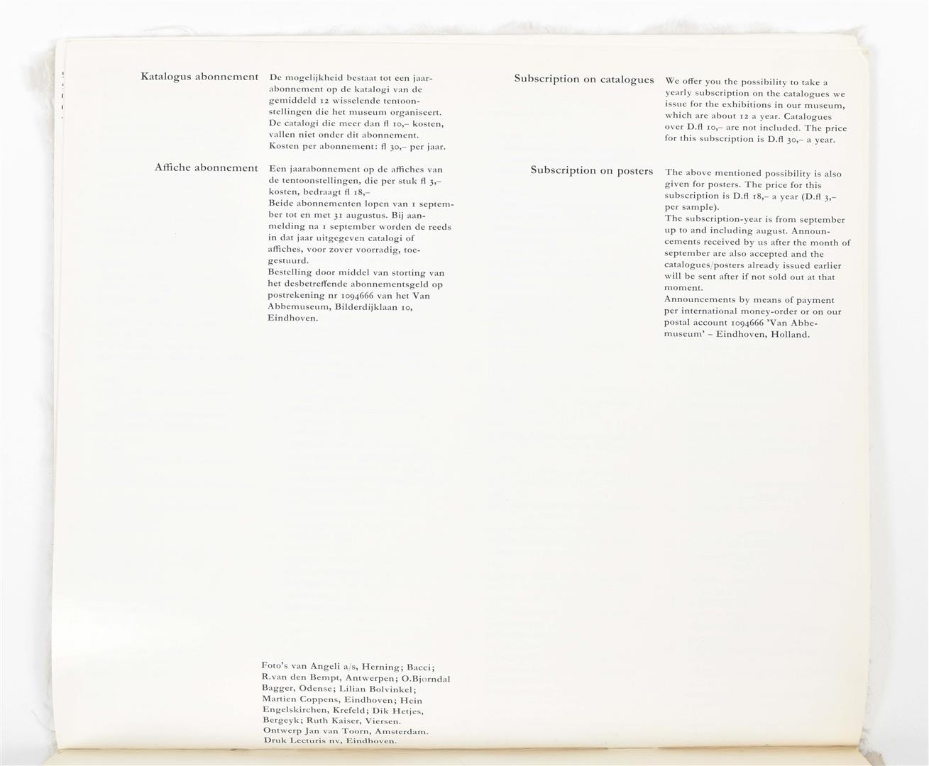 Eindhoven, Van Abbemuseum, 1969. Exhibition catalogue with original white fake fur cover, 26 x 24 cm, 20 pp.