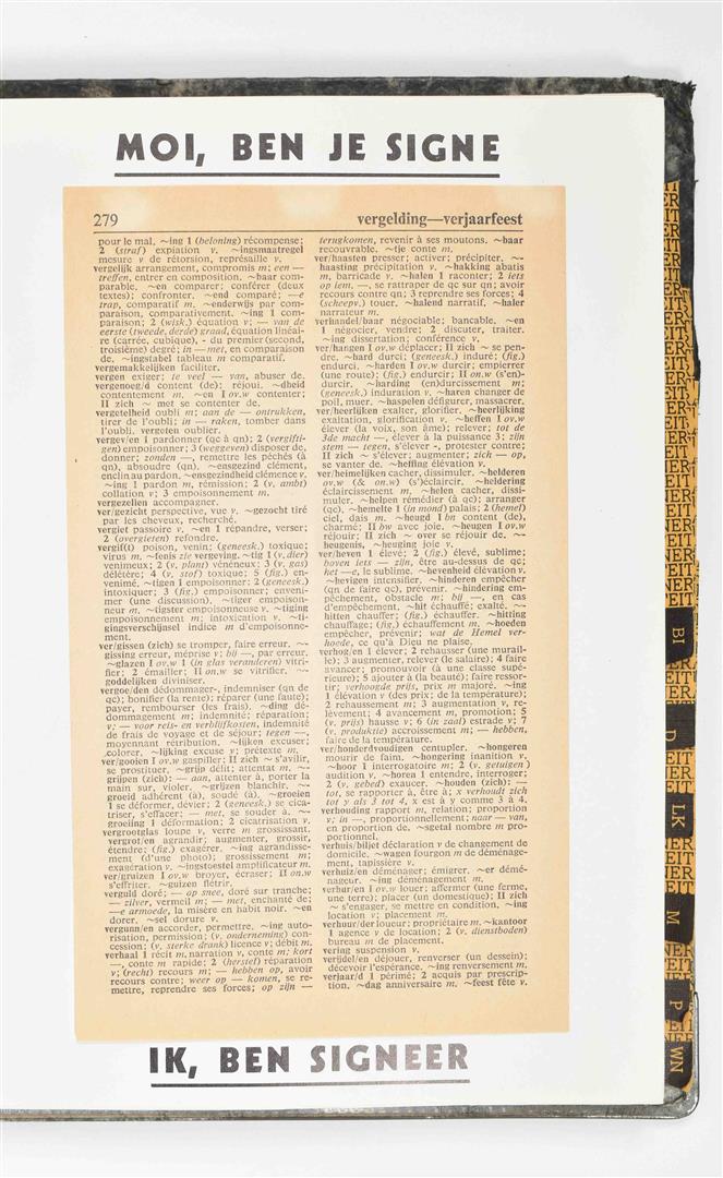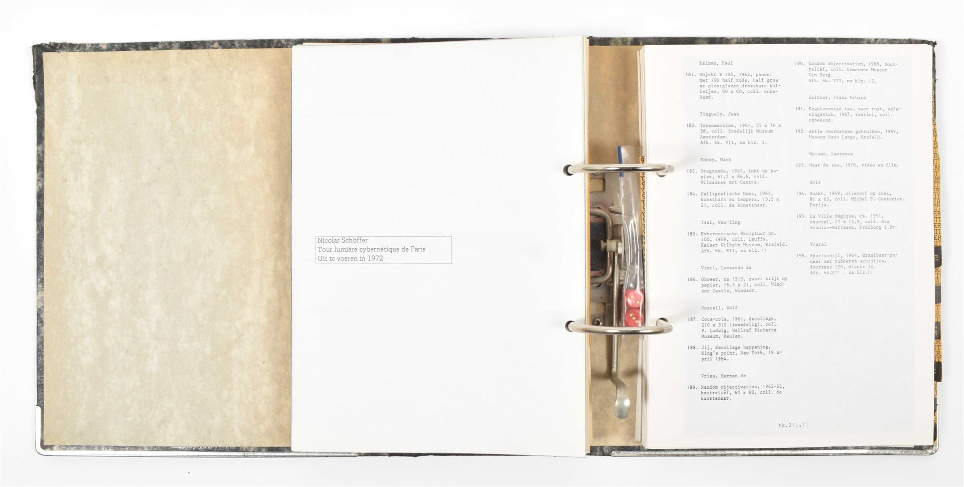 Includes programme and contributions by artists such as Vito Acconci, John Cage, Douglas Huebler, David Medalla, Lygia Clark and herman de vries. Texts by Frans Haks et al, design by Anthon Beeke. Edition of 2000 copies. This copy includes the extra items that are often missing: the pamphlet Chance Imagery by George Brecht, 2 cards and a page from a dictionary by Ben Vautier (pasted in), Morellet instructions for a multiple and proposal for a neon work, 2 red dice in plastic bag. Moderate wear at top corners of the binder, else in very good condition. Rare.