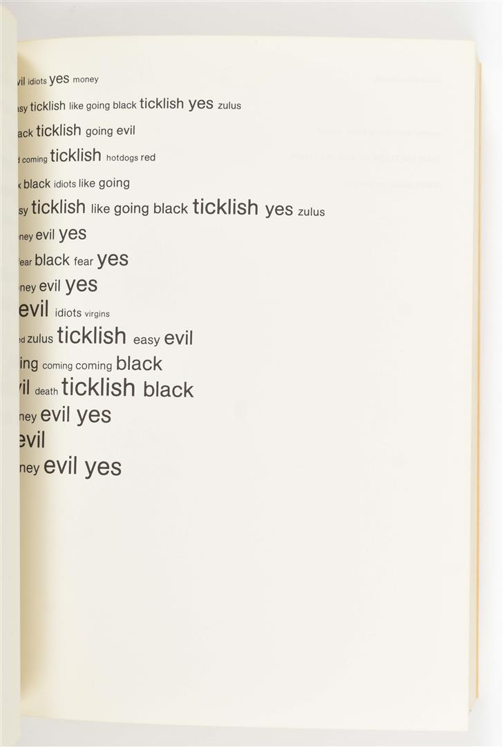 (1) Emmett Williams, A Valentine for Noël: Four Variations on a Theme. Stuttgart, Edition Hansjörg Mayer, 1973. Softcover, 272 pp. First edition of 2.000 copies. Age toning on spine of wrapper, else very good.