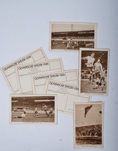 Offered by the N.V. Amstelbrouwerij Amsterdam. Oblong, stapled. 2 numbers written on front in pen, otherwise good copy. + 10 postcards of the Olympic Games: 1928, edition Monopolie, Weenenk & Snel, den Haag. None of them have been written on and all are in good state.
