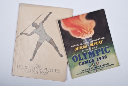 Les Ateliers d'arts graphyiques Fretz frères S.A., Zurich. Jules Wagner - Guido Eichenberger, 1924. (2), 69, (5) p. Good copy. + British Olympic association Official Report of the London Olympic Games 1948. Published by World Sports the official magazine of the British Olympic Association. 112 p. Good copy.