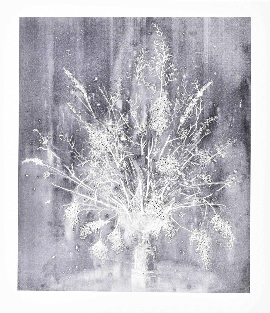 Archival pigment print, 44 x 38 cm, signed and dated 'Michael Raedecker, 2009' and numbered 83 /120 on reverse. Special edition for the solo exhibition 'Line-Up' in GEM, Museum voor actuele Kunst, The Hague, 2009. In mint state.