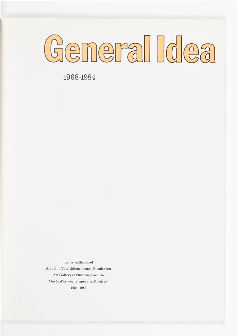 (1) General Idea 1968-1984. Eindhoven, Stedelijk Van Abbemuseum, 1984. Softcover, 22 x 29 cm, 114 pp. Edition of 2000. Catalogue for a survey show travelling to Basel, Eindhoven, Toronto and Montreal. Prof. ills. in b/w and colour, with one folding plate. Texts in English by J.C. Ammann, Tim Guest and General Idea. Light rubbing on edge of spine, tiny dog-ear rear cover, else in good condition.