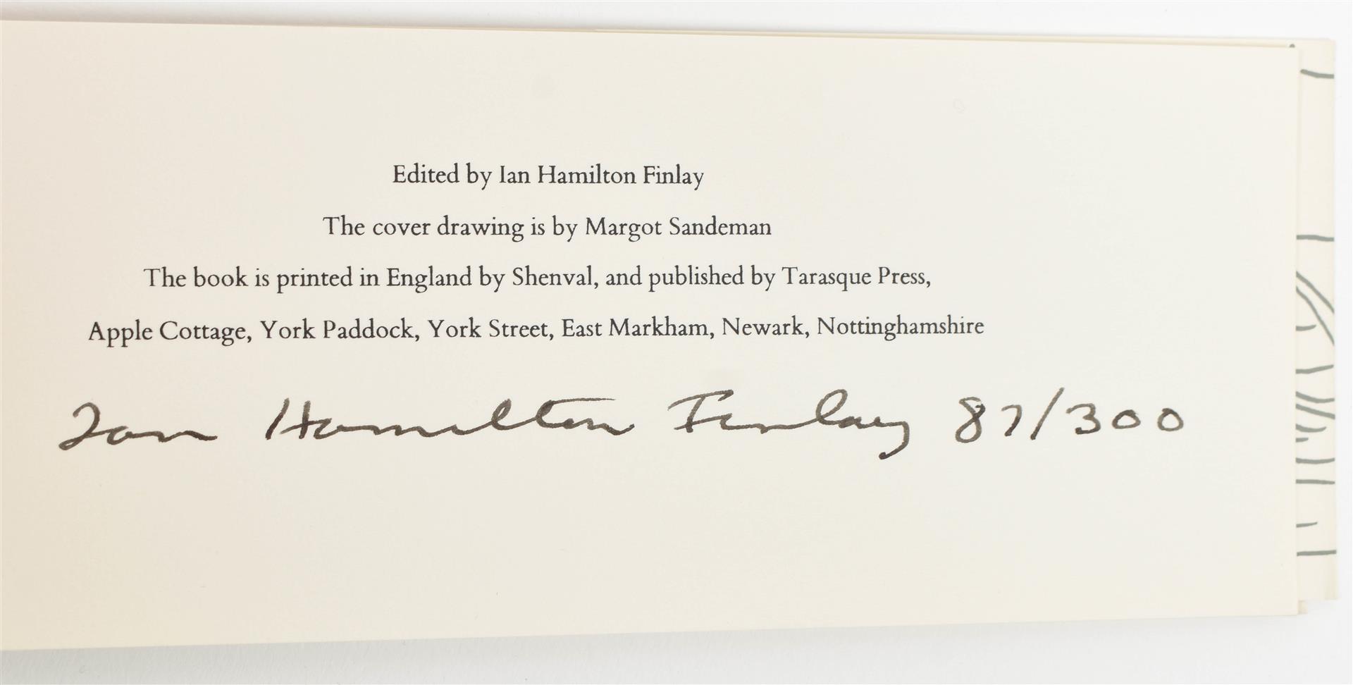 Artists' book featuring text derived from fisherman's labels identifying their vessel. (Hope, Quite Water, Harvest Reaper, Fidelis, Launch Out etc). One of 300 signed and numbered copies, this is number 87. Mint copy.
