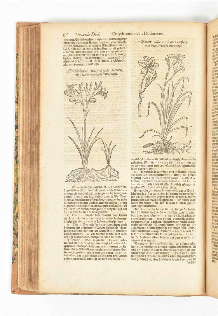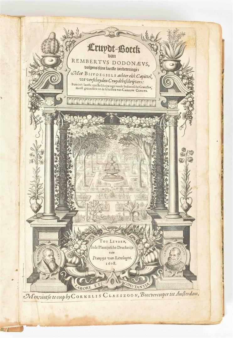 volgens sijne laetste verbeteringe: Met bijvoegsels achter elck capittel, uut verscheyden Cruydtbeschryvers (...). Leyden, F. van Ravelingen, 1608. (4),1580,(79) p. Engr. title-p., num. woodcuts throughout of var. plants. Modern hcalf. Folio.