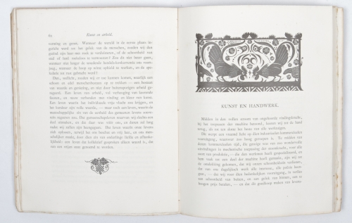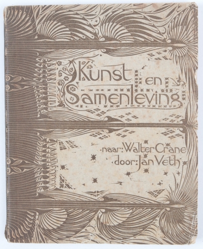 After Walter Crane by Jan Veth. Scheltema & Holkema, 1894. With numerous vignettes, cut in wood by G.W. Dijsselhof. 171 p. Sl. dam. along extremities. Paper cover, fairly good copy.