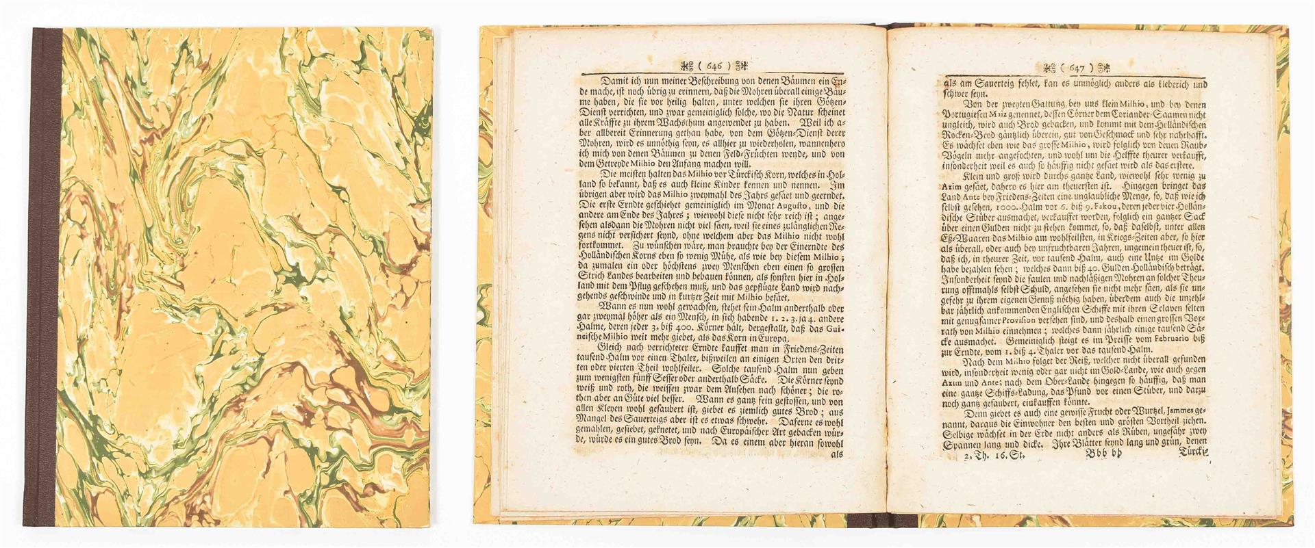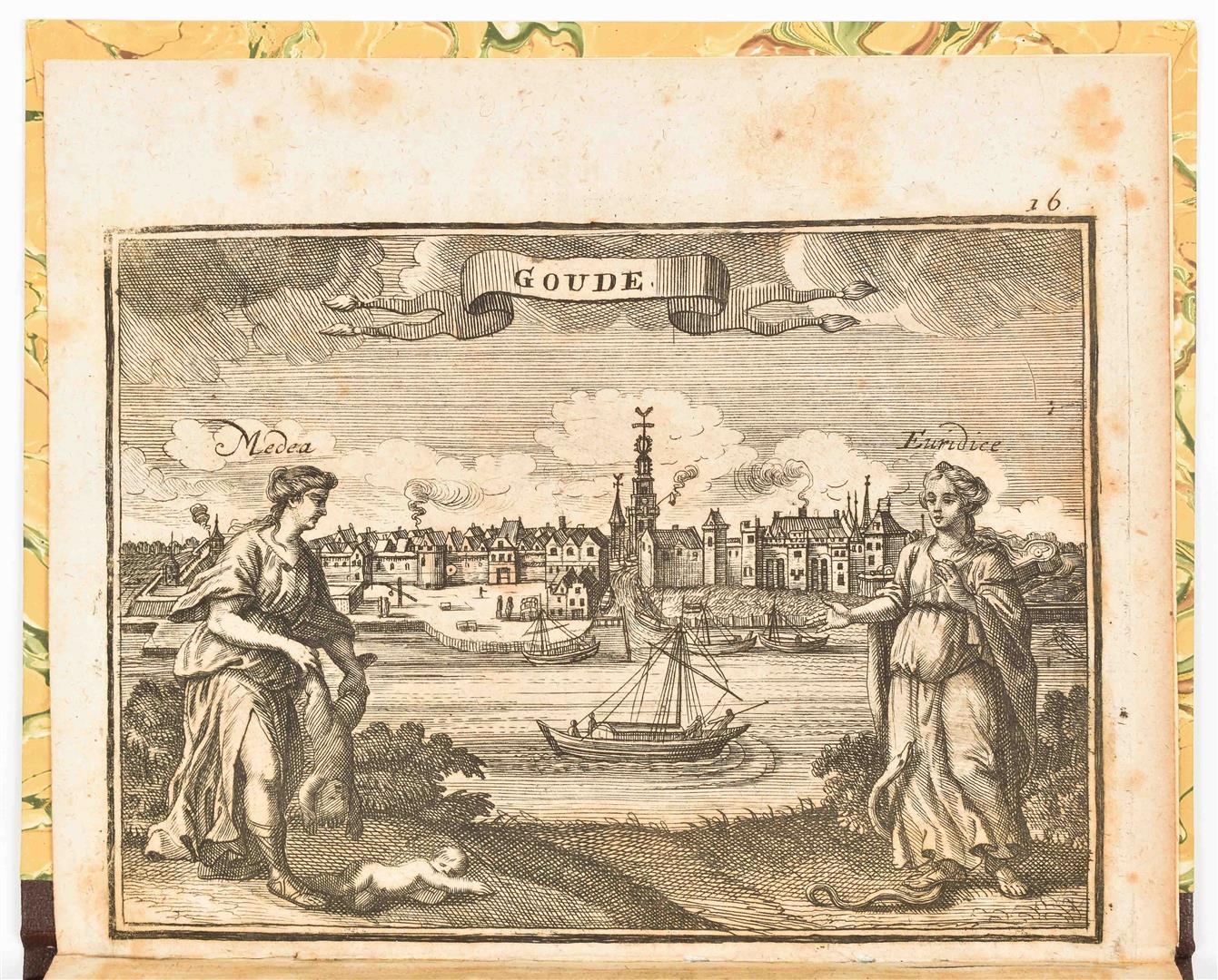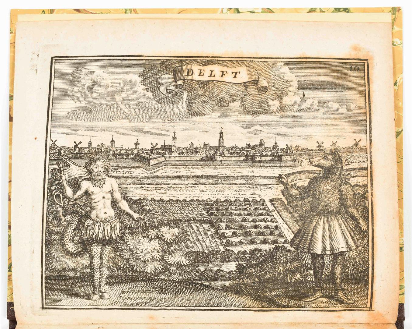 was er von dem Zustande und denen Begebenheiten der Welt, sonderlich aber derer Europaeischen Lande, dem Beherrscher des Chinesischen Reichs, vor Bericht erstattet (...) Des andern Theils Zehntes Stuek. Leipzig, Coernerischen Erben, Joh. Schwaben, 1724. 2 chapters from this work, p. 385-426 and 625-666. 1 w. copper engr. view of Delft, the other w. copper engr. view of Gouda. Later unif. half faux-leather w. marbled paper boards. Sm. 4to.